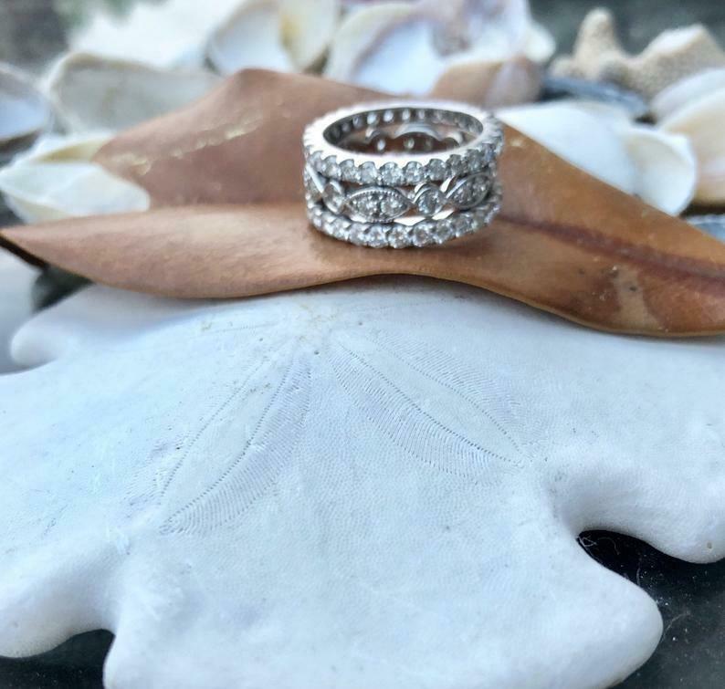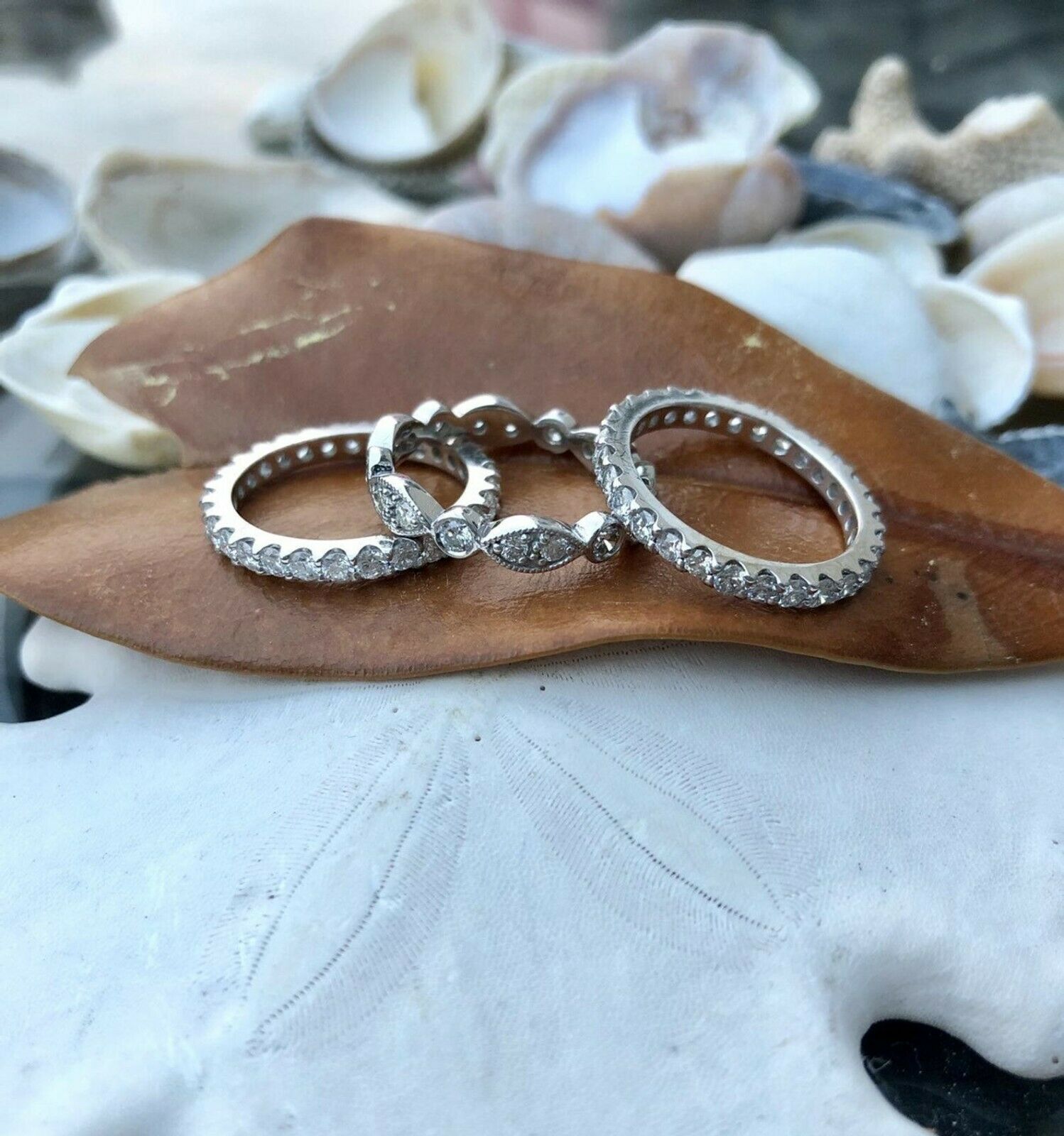 3ct Round Cut Diamond Trio Set Eternity Wedding Ring Band 14K White Gold Finish