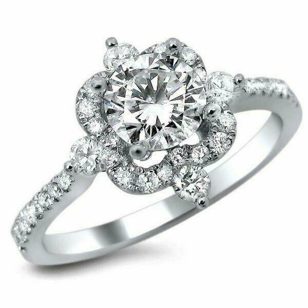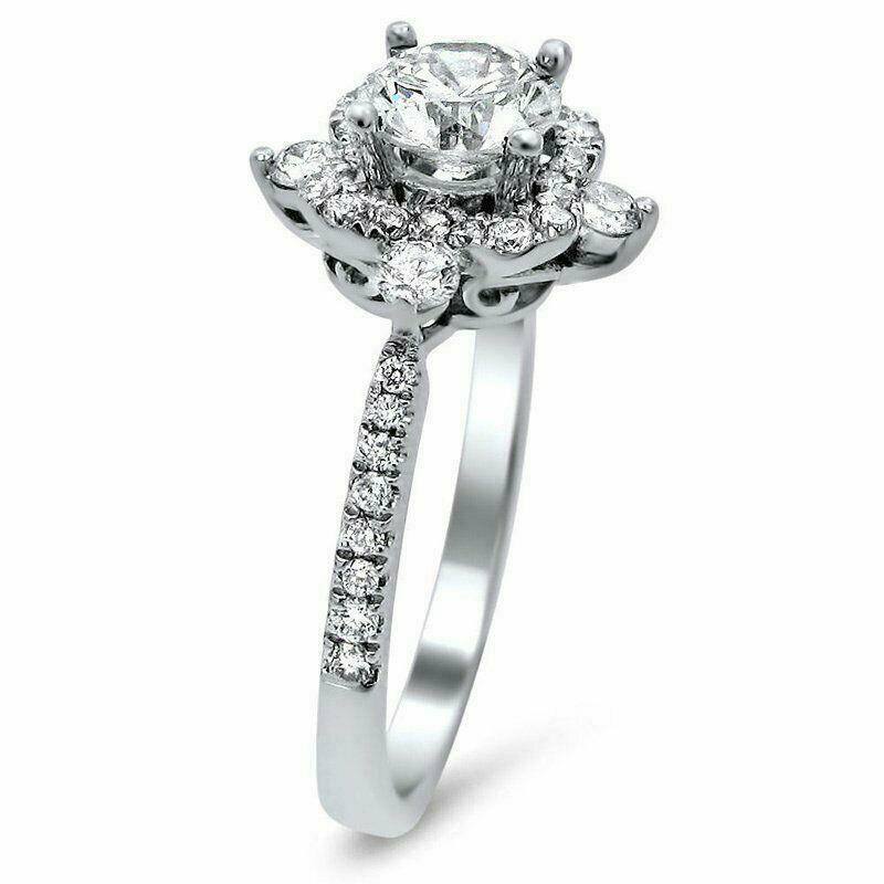 3ct Round Cut Diamond Unique Halo Design Engagement Ring 14K White Gold Finish