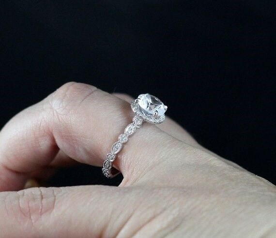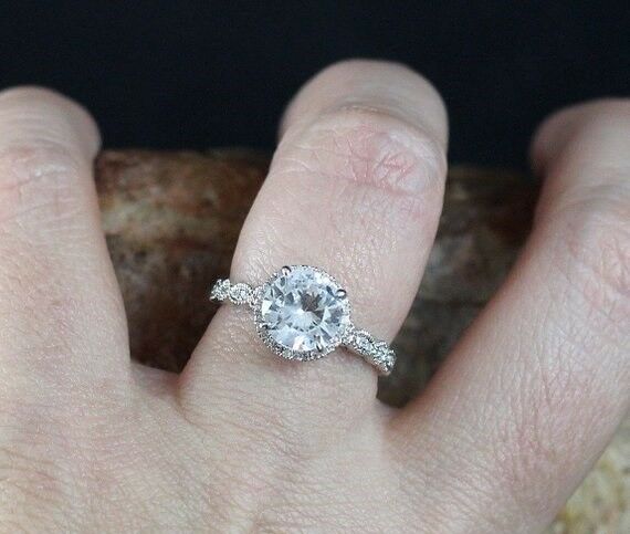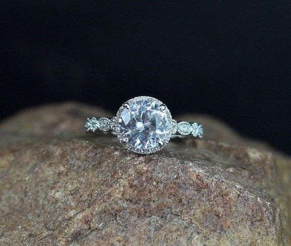 3ct Round Cut Diamond Vintage Solitaire Engagement Ring 14k White Gold Finish