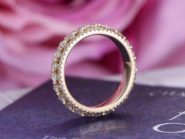 3ct Round Cut Diamond Wedding Band Three Row Petite Eternity 14k Rose Gold Over