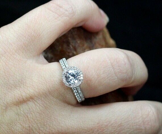 3Ct Round Cut DVVS1 Diamond Bridal Set Band Halo Ring 14K White Gold Finish