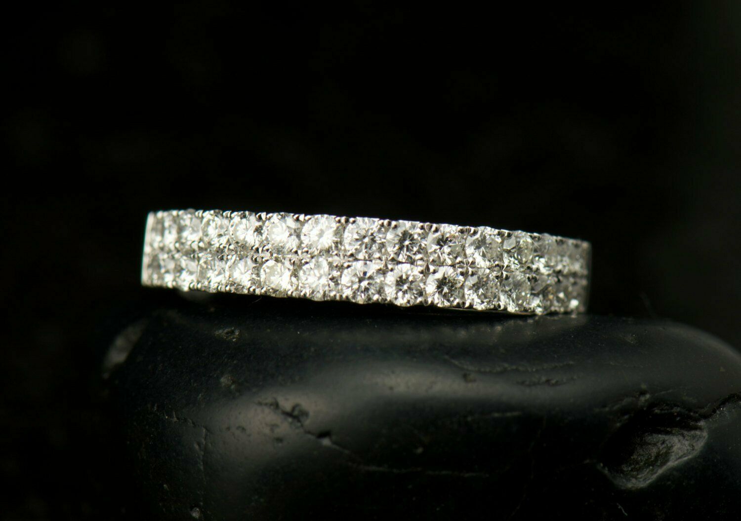 3Ct Round Cut DVVS1 Diamond Cluster Two Row Wedding Band 14K White Gold Finish