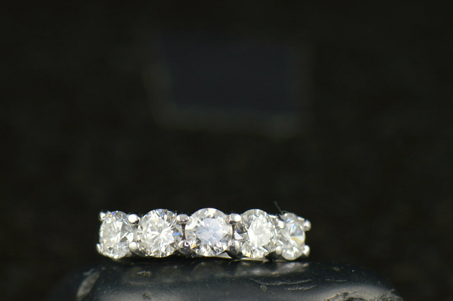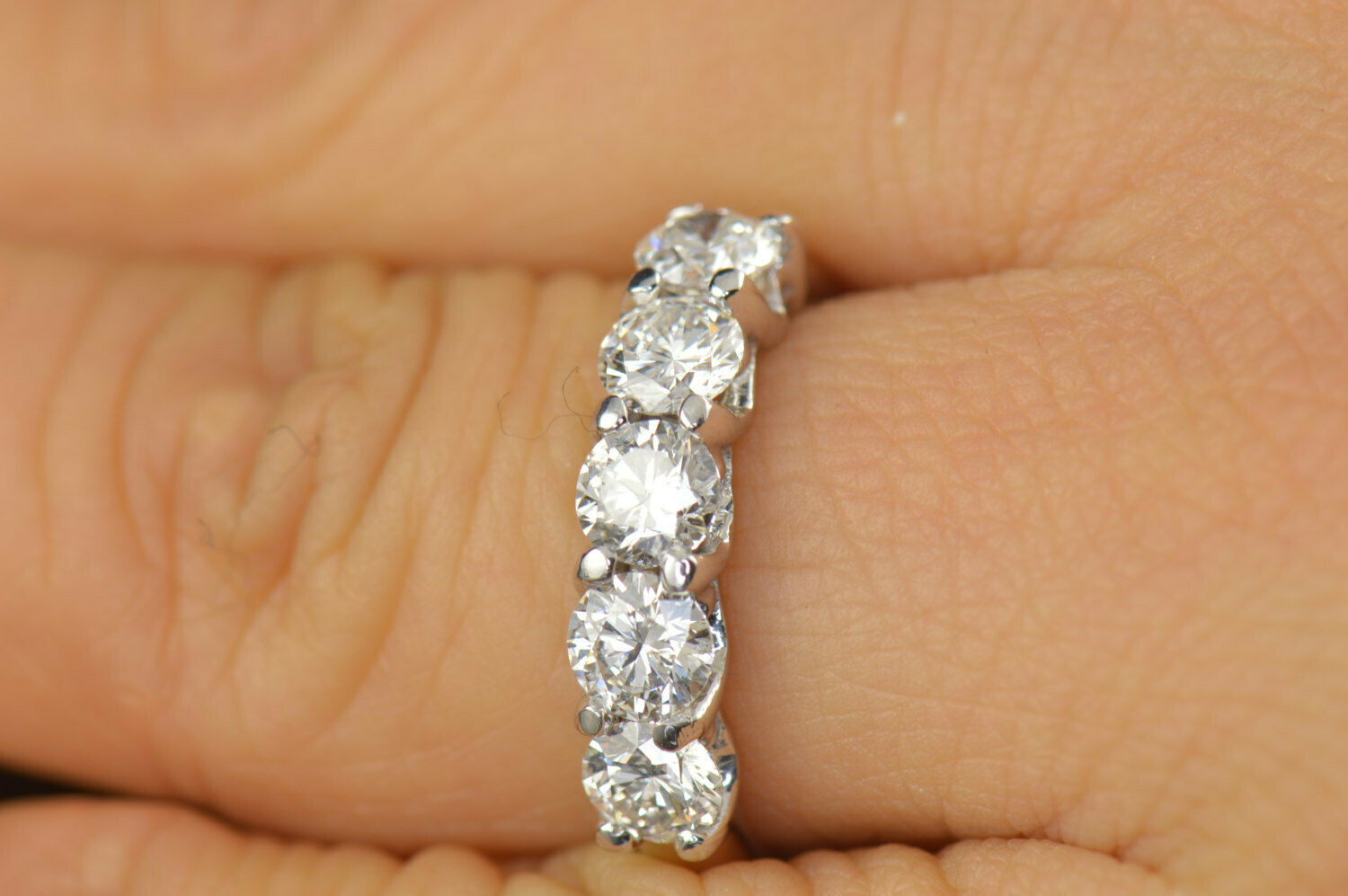 3Ct Round Cut DVVS1 Diamond Five Stone Engagement Ring 14K White Gold Finish
