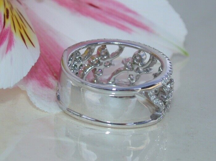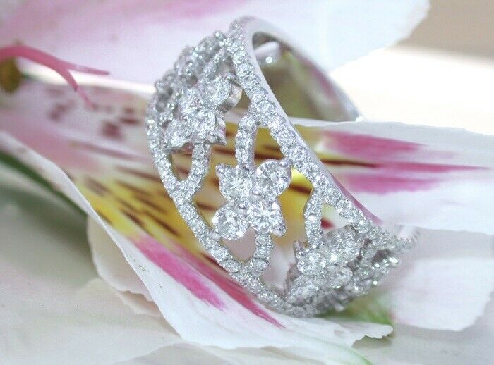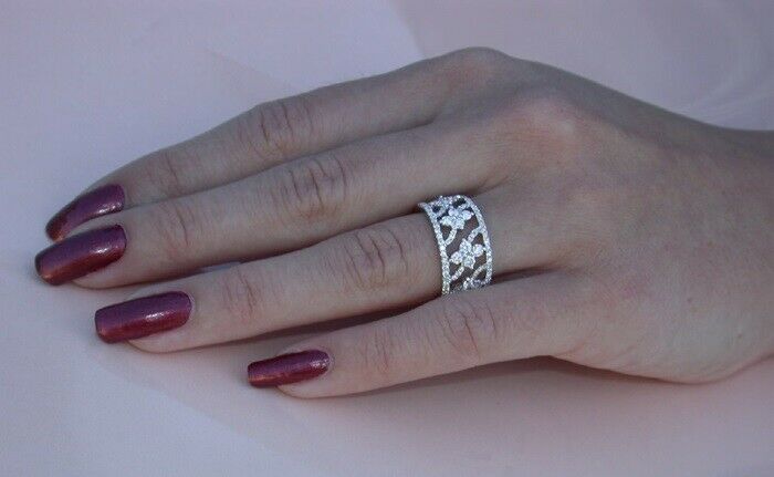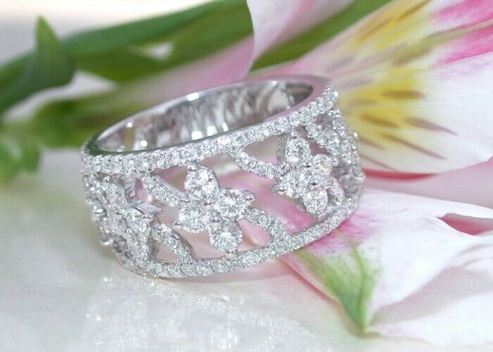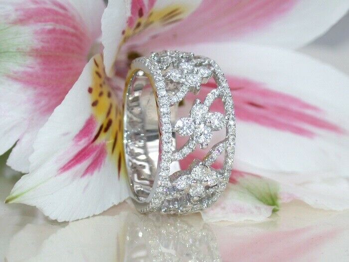 3Ct Round Cut DVVS1 Diamond Flat Wide Floral Wedding Band 14K White Gold Finish