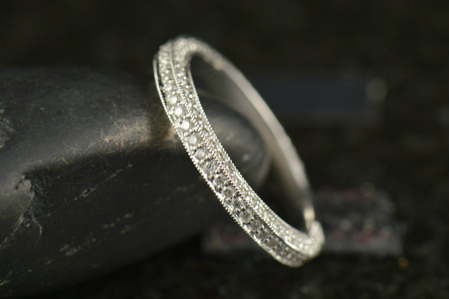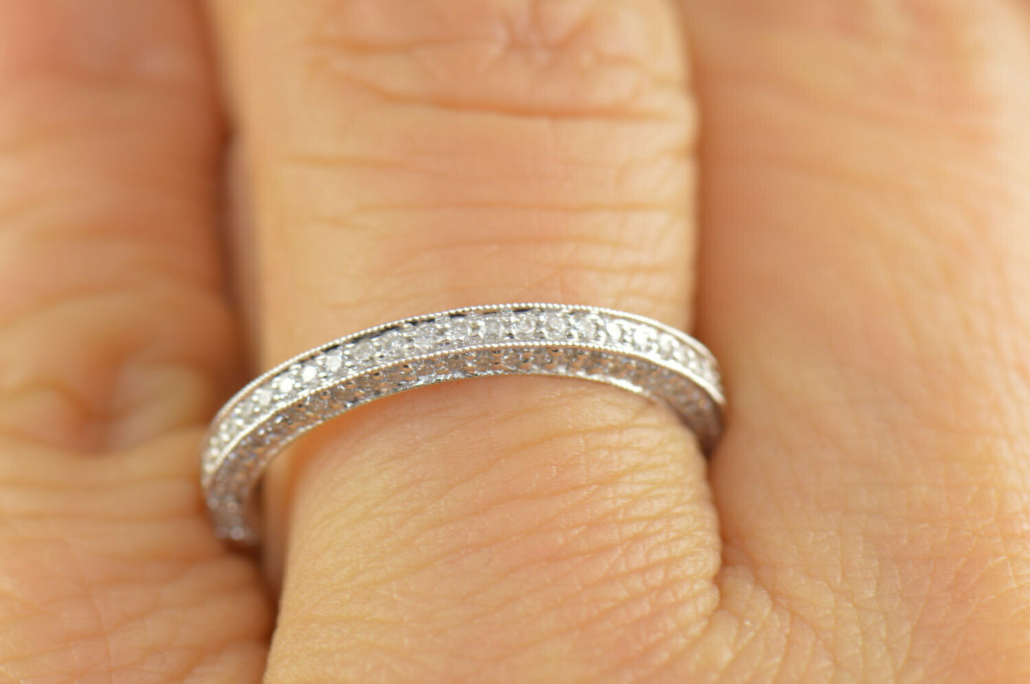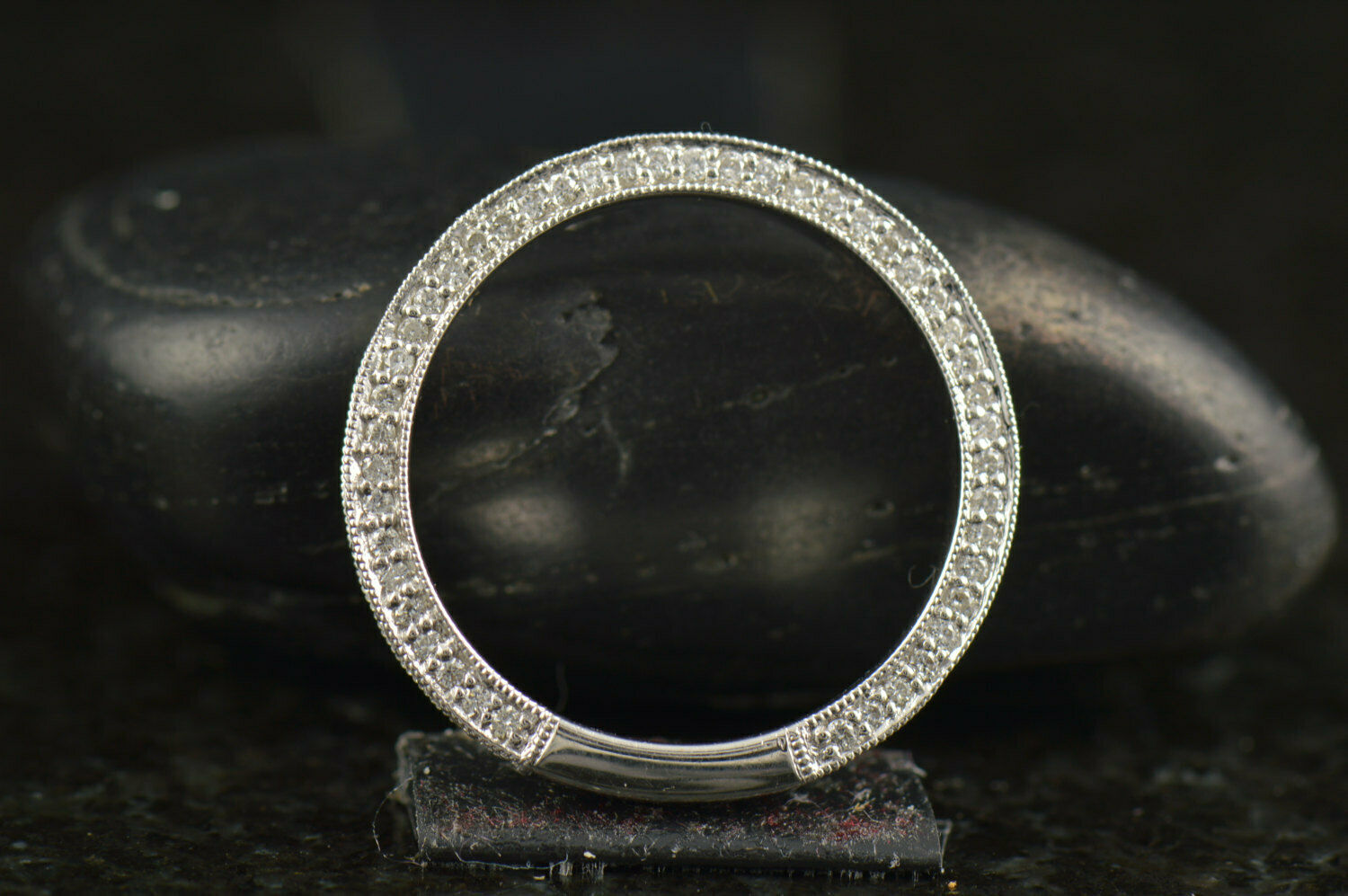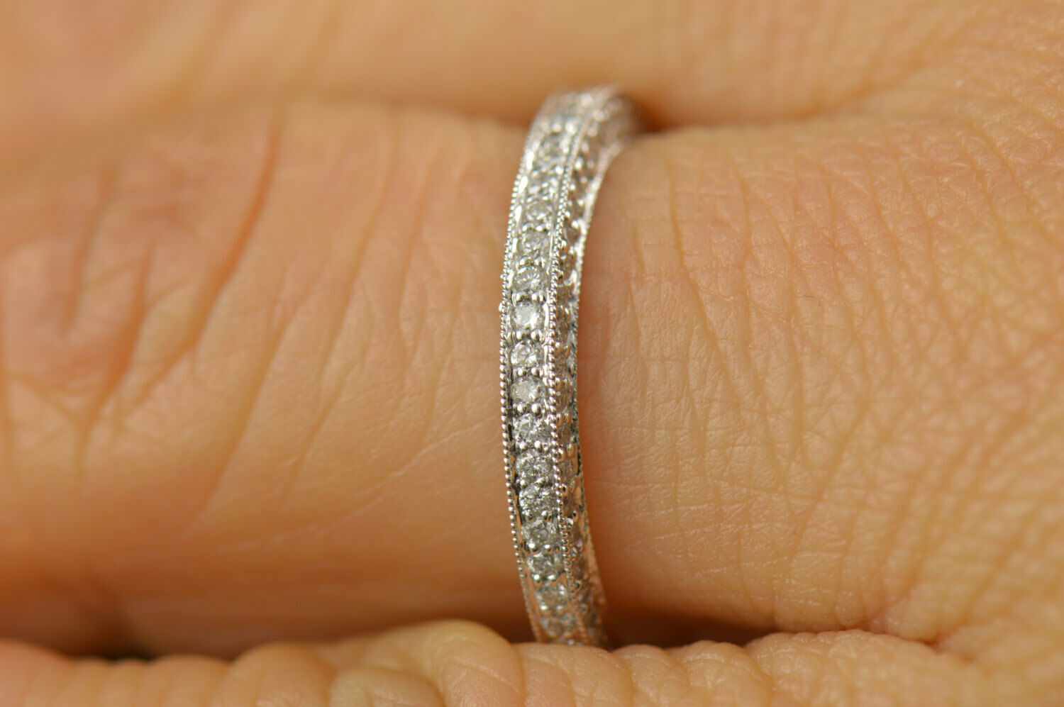3Ct Round Cut DVVS1 Diamond Milgrain Iced Wedding Band 14K White Gold Finish