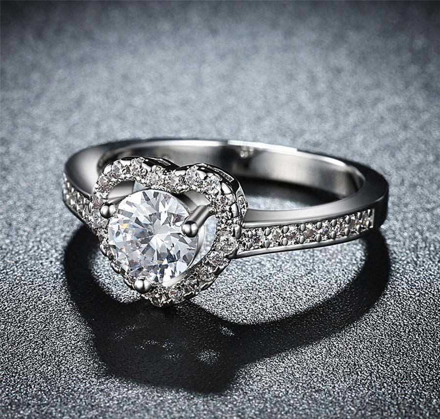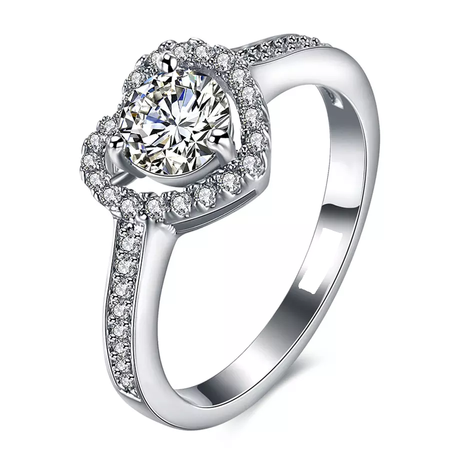 3Ct Round Cut VVS1/D Diamond Heart Shaped Engagement Ring 14K White Gold Finish