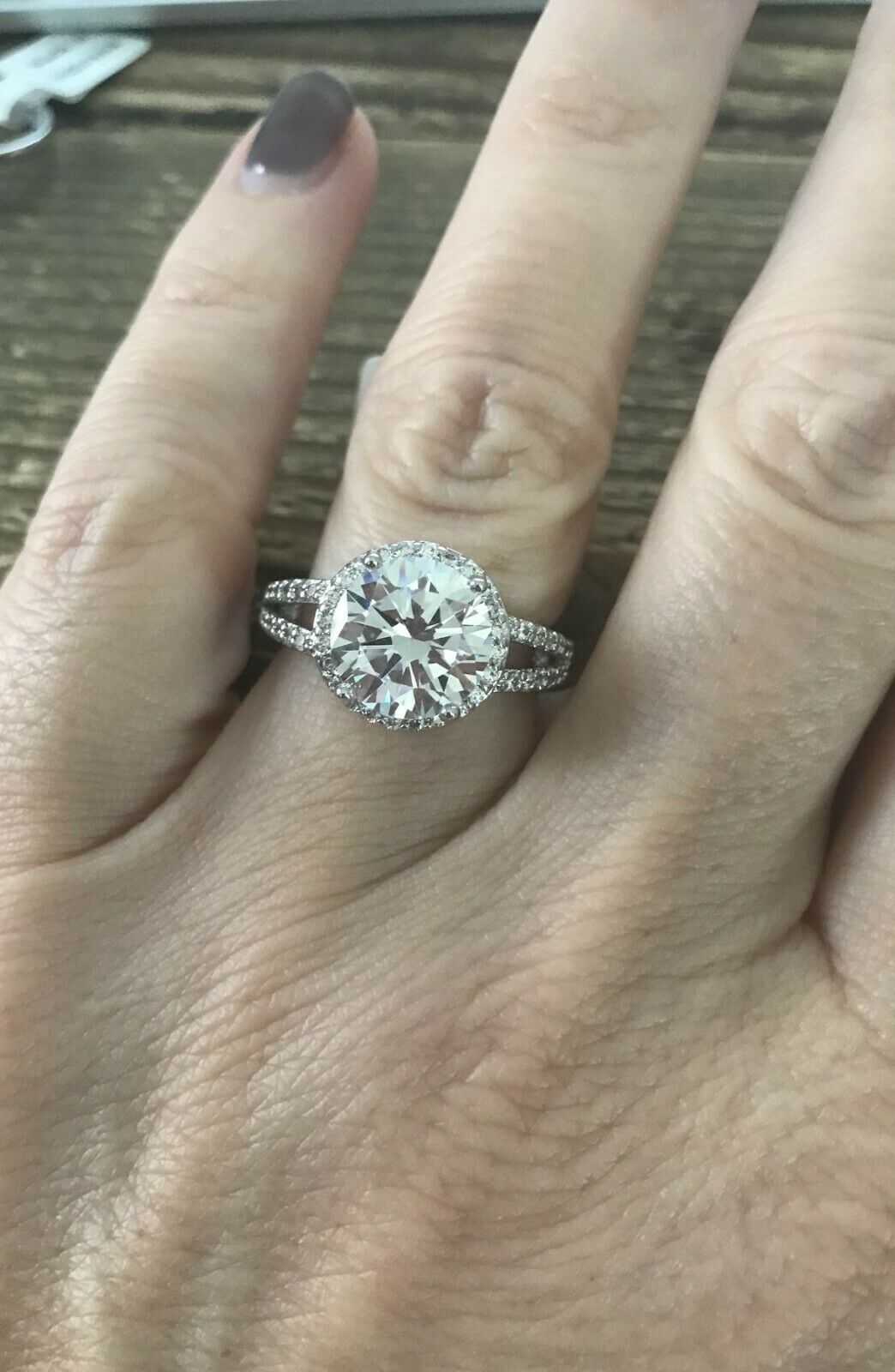 3Ct Round Cut VVS1 Diamond Halo Split Band Engagement Ring 14K White Gold Finish