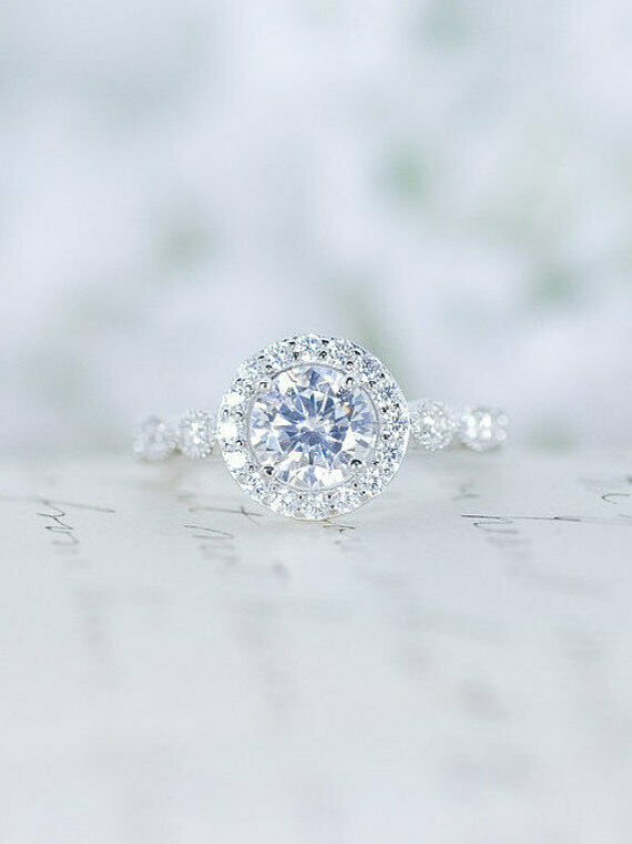 3Ct Round Cut VVS1 Diamond Vintage Halo Engagement Ring 14K White Gold Finish