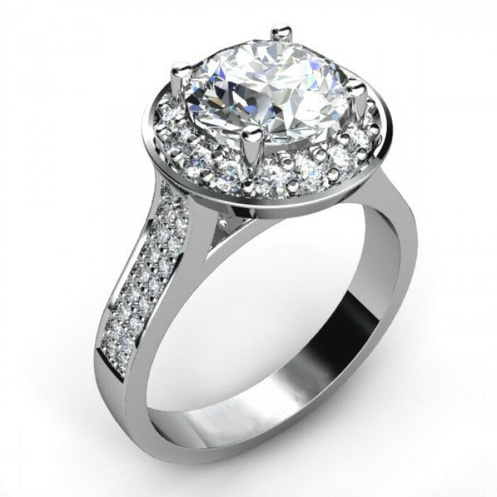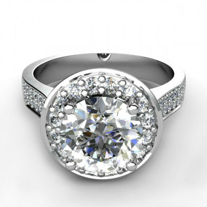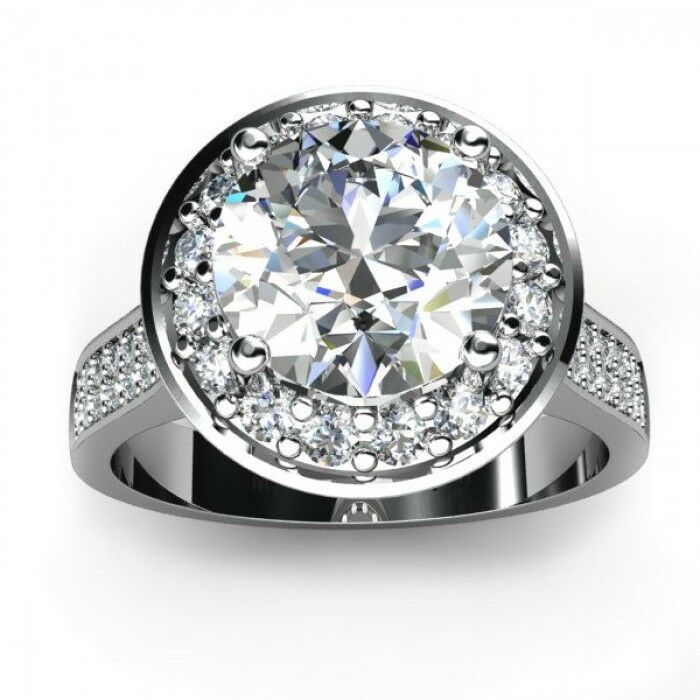 3ct Round Cut VVS1D Diamond Halo Stylish Engagement Ring 14k White Gold Finish