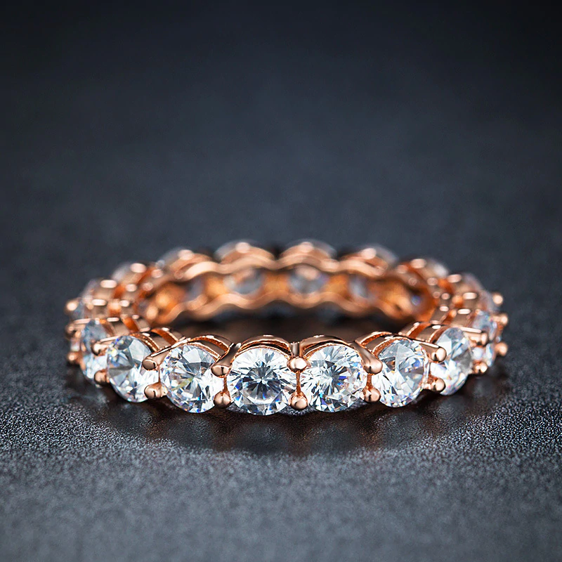 3ct Round Cut VVS1D Diamond Wedding Ring Band 14k Rose Gold Finish Full Eternity