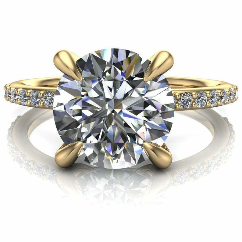 3ct Round Cut Diamond 4 Claw Prong Solitaire with Accent Ring 14k White Gold Finish