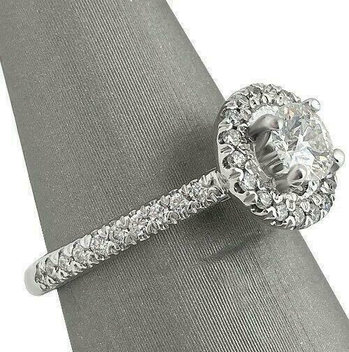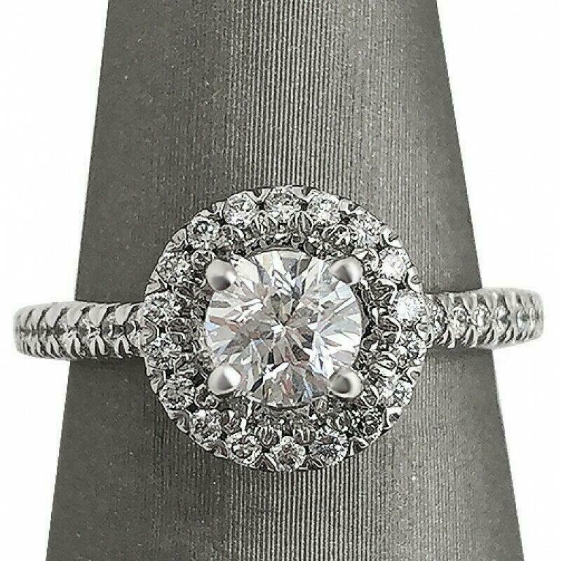3ct Round Diamond Accent Halo Solitaire Engagement Ring 14K White Gold Finish