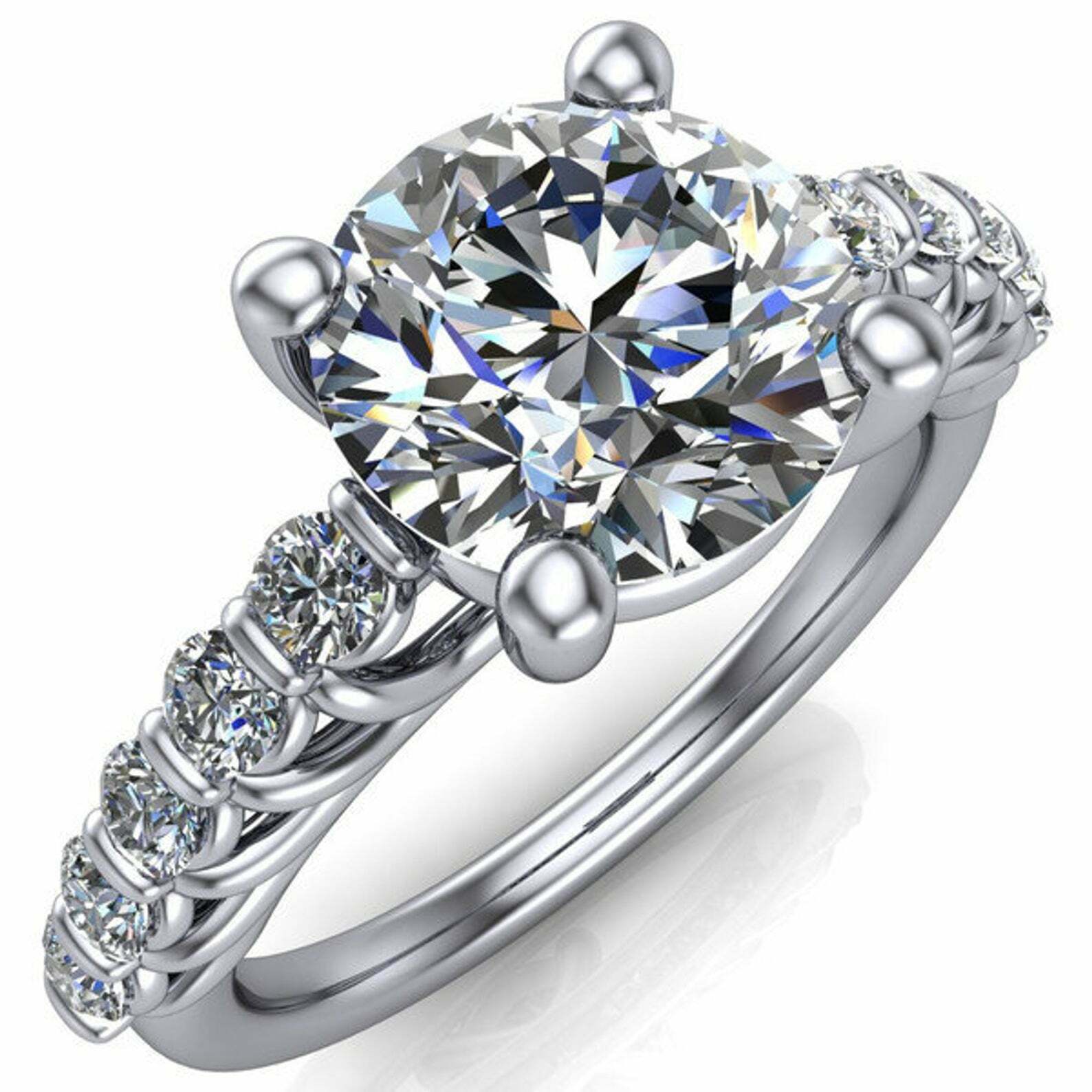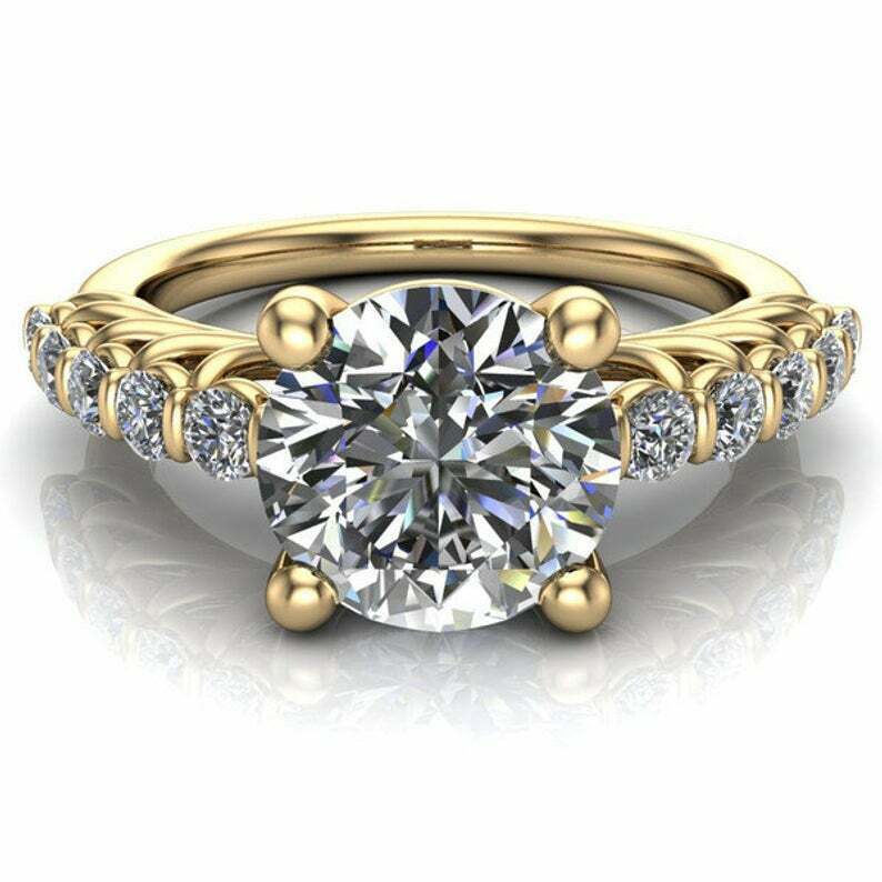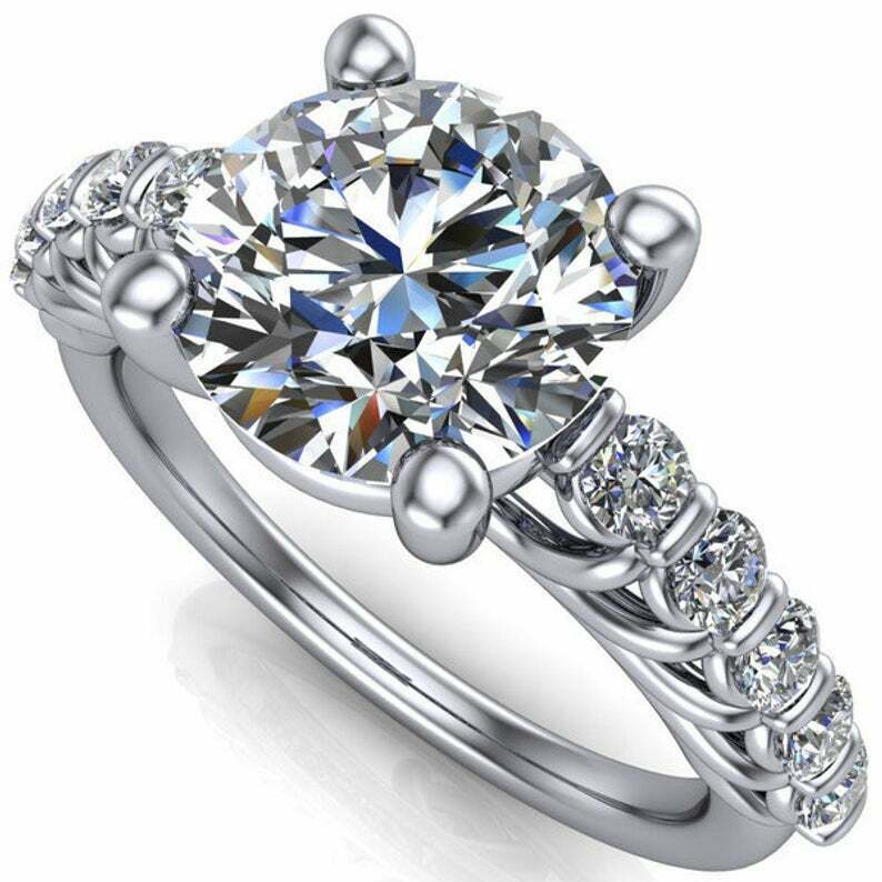 3ct Round Diamond Engagement Ring Solitaire Accent Floral 14k White Gold Finish
