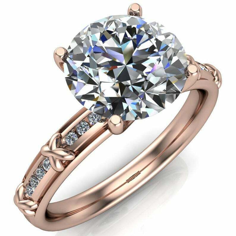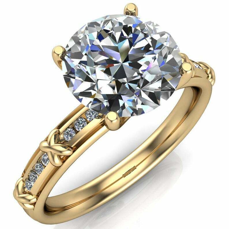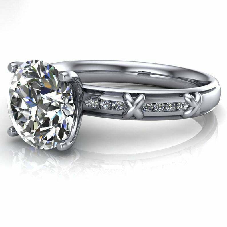 3ct Round Cut Diamond Engagement Ring Solitaire with Cross Accent 14k White Gold Over
