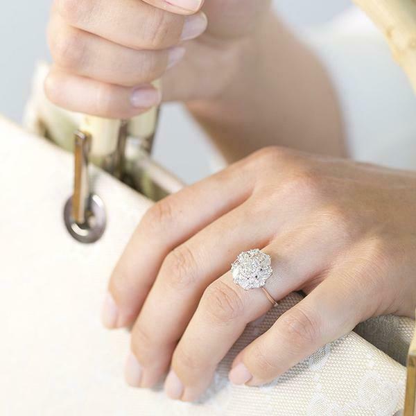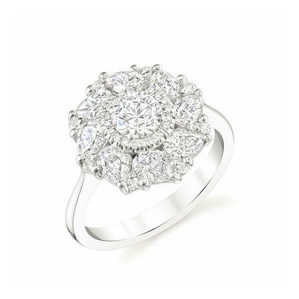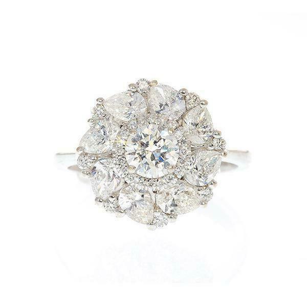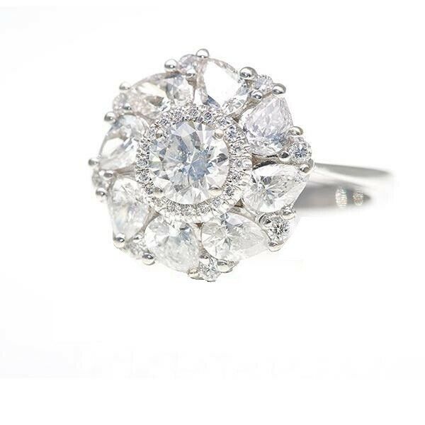 3Ct Round Pear Cut Diamond Floral Halo Engagement Ring 14K White Gold Finish