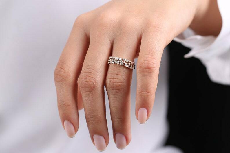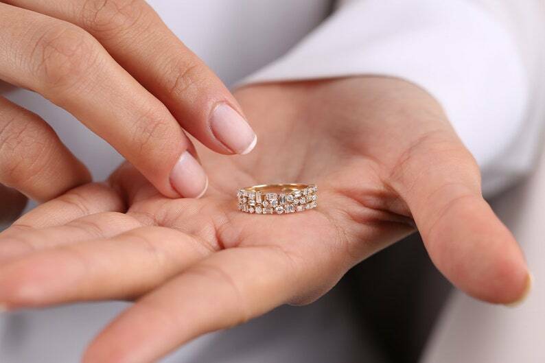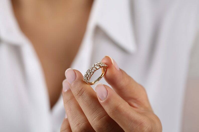 3ct Wedding Band Baguette Round Cut Diamond Cluster Art Deco 14k Yellow Gold Over