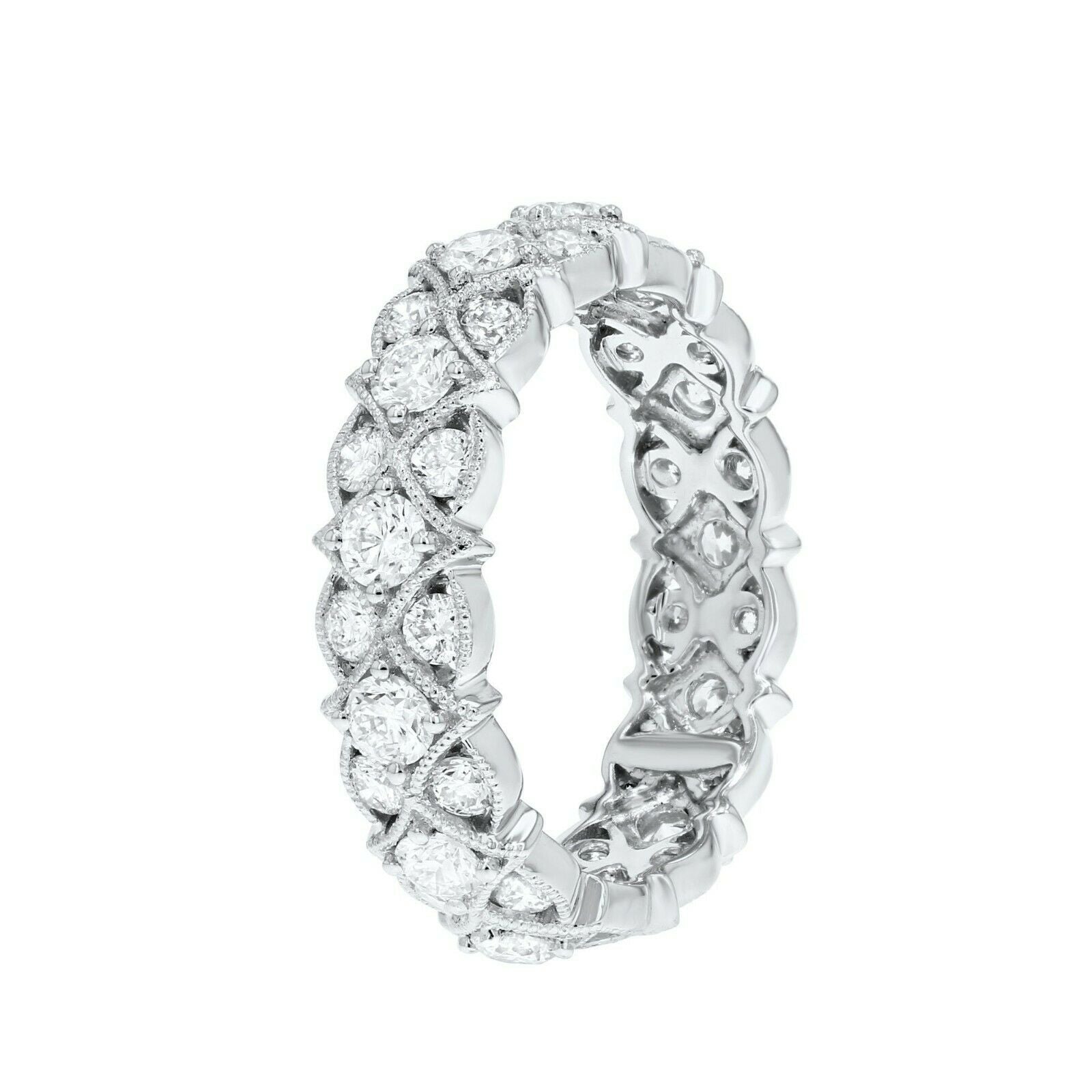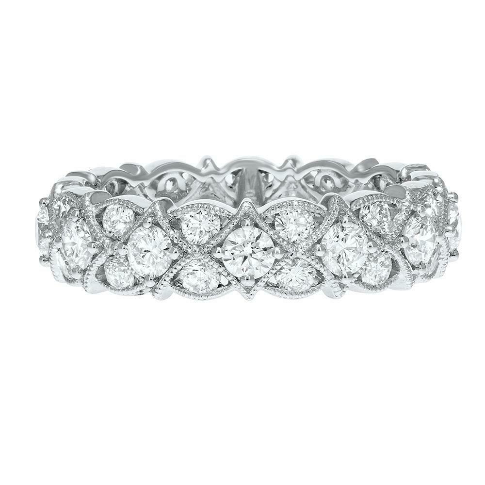 3ct Wedding Band Round Cut Diamond Vintage Inspired Milgrain 14k White Gold Over