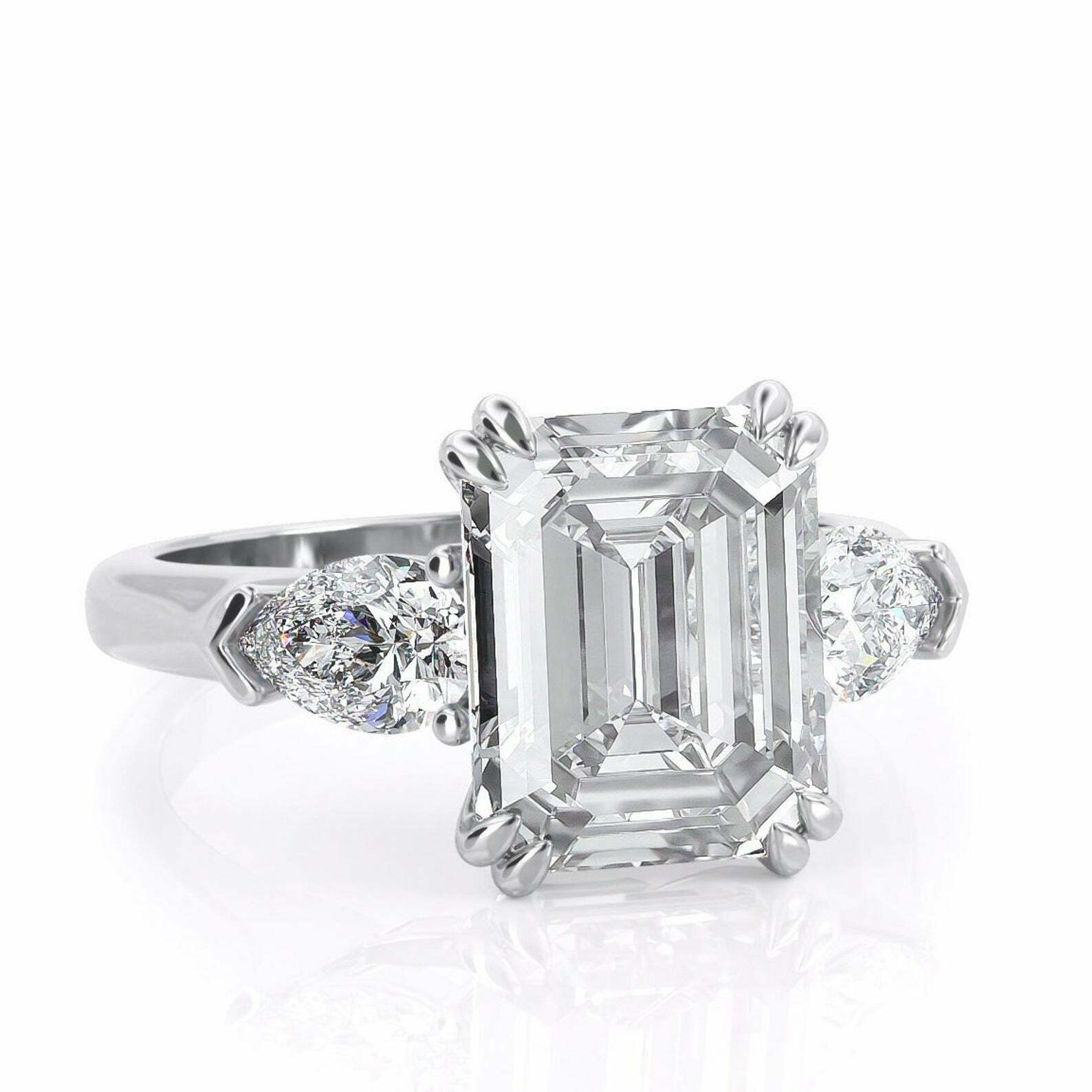 4.41ct Emerald Cut Diamond Engagement Ring Pear Accents Trilogy 14k White Gold Over