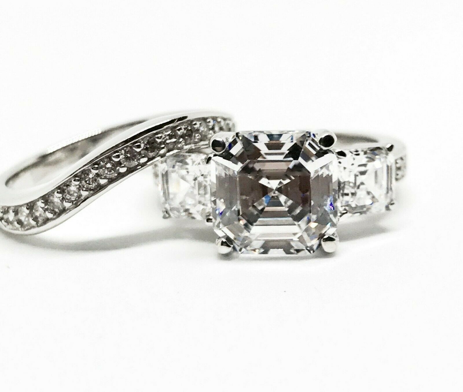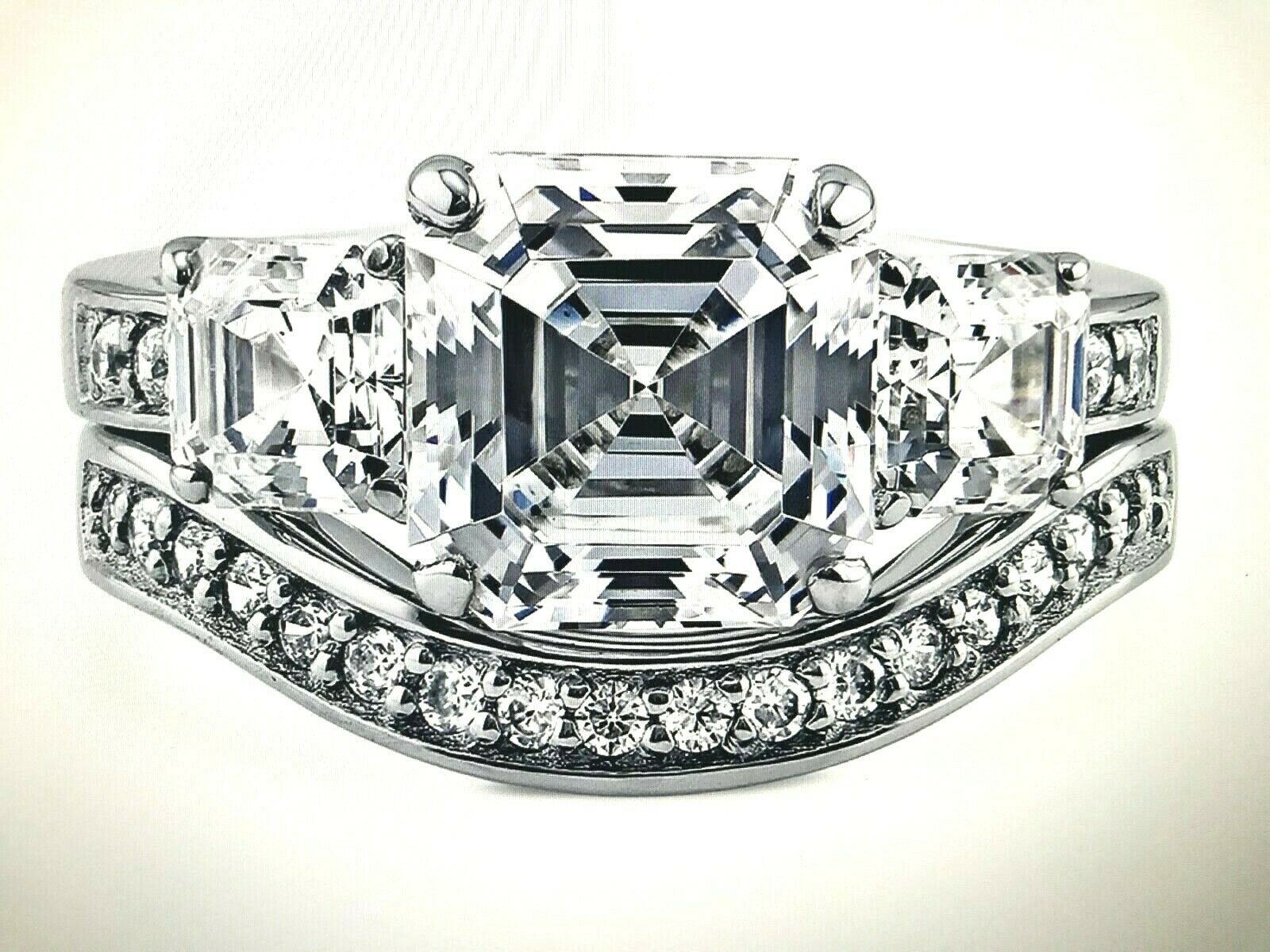 4.4Ct Asscher Cut Diamond Bridal Set Engagement Ring Band 14K White Gold Finish