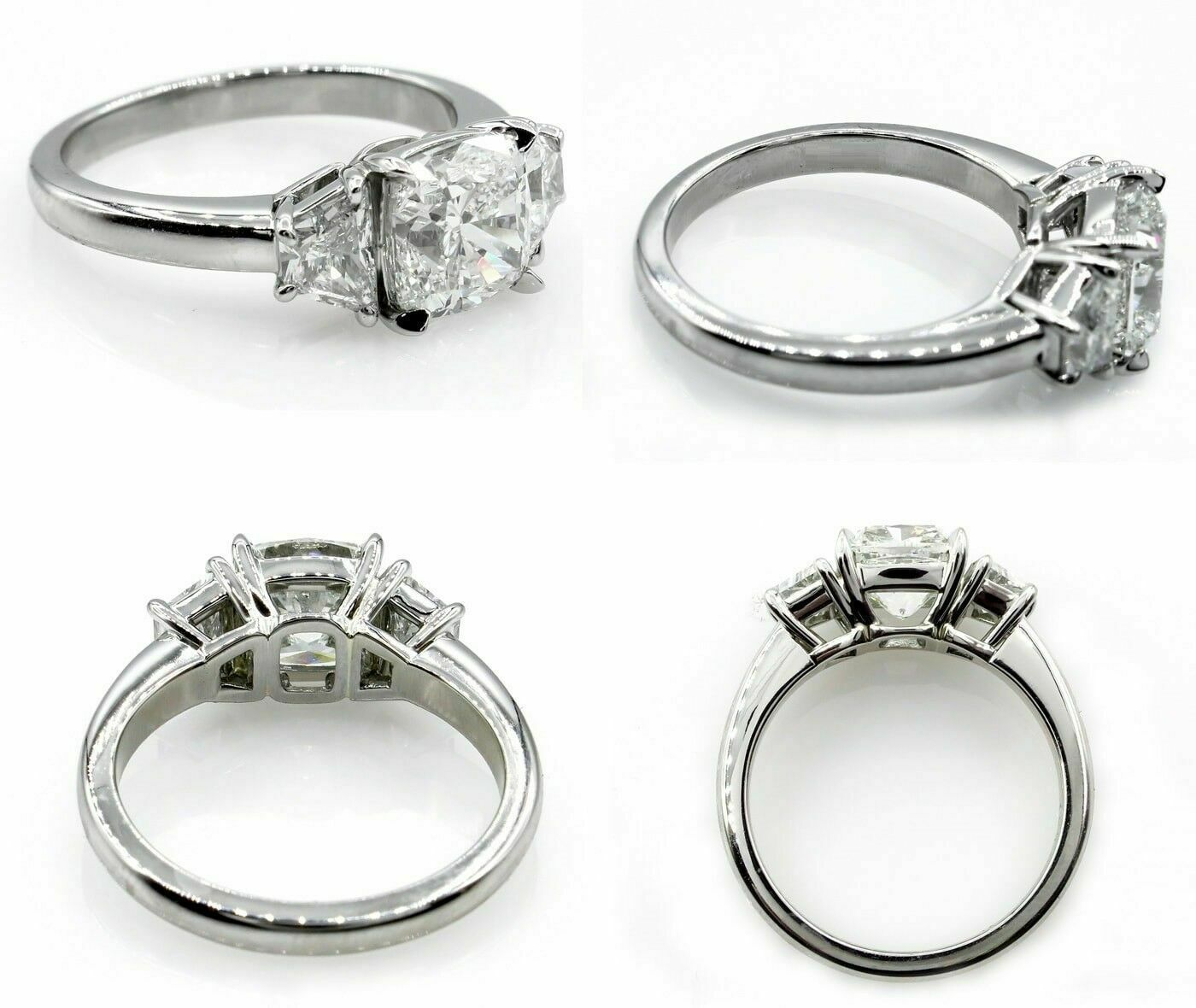 4.5ct Cushion Cut Trilogy Engagement Ring 14K White Gold Over Trapezoid Accents