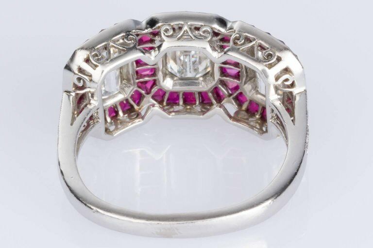 4.5Ct Emerald Cut Diamond Ruby Halo Art Deco Engagement Ring 14K White Gold Over