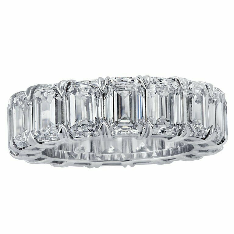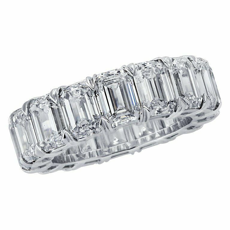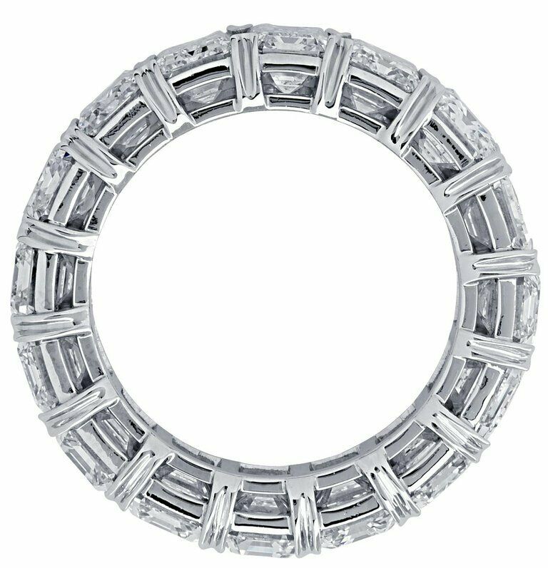 4.5ct Emerald Cut Diamond Wedding Ring Band Full Eternity 14k White Gold Finish