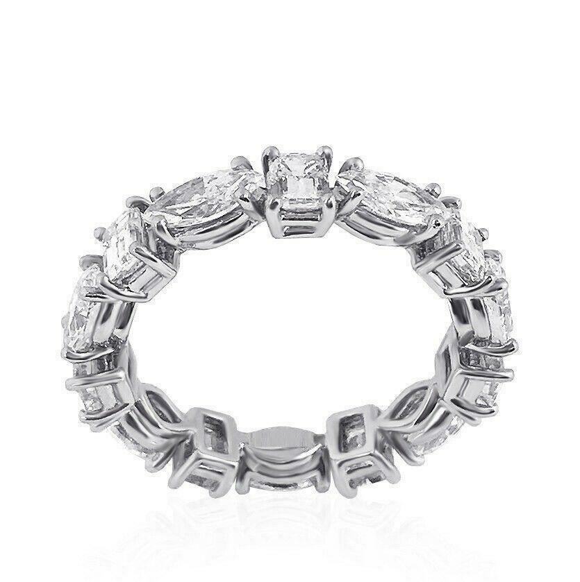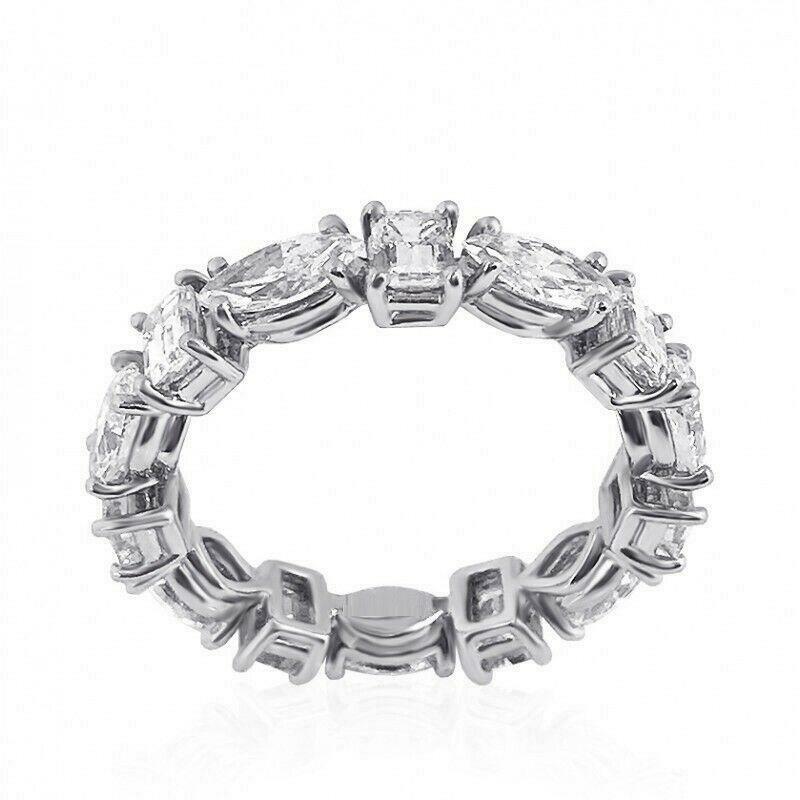 4.5ct Marquise Emerald Diamond Full Eternity Wedding Band 14K White Gold Over