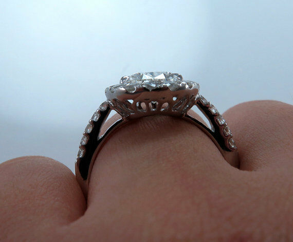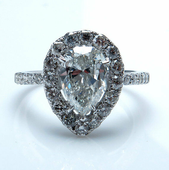 4.5Ct Pear Cut VVS1/D Diamond Halo Vintage Engagement Ring 14K White Gold Finish