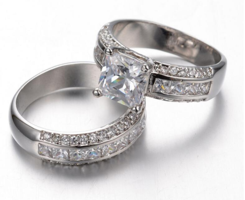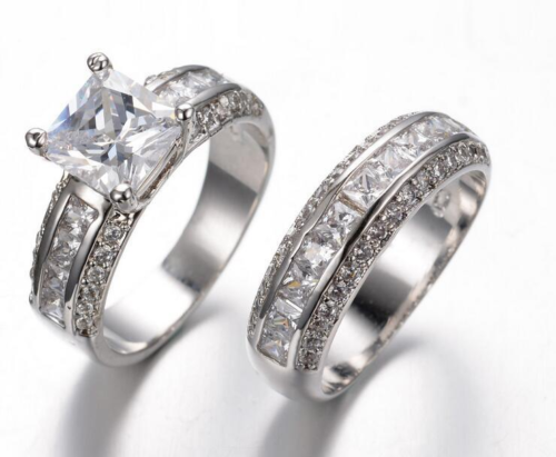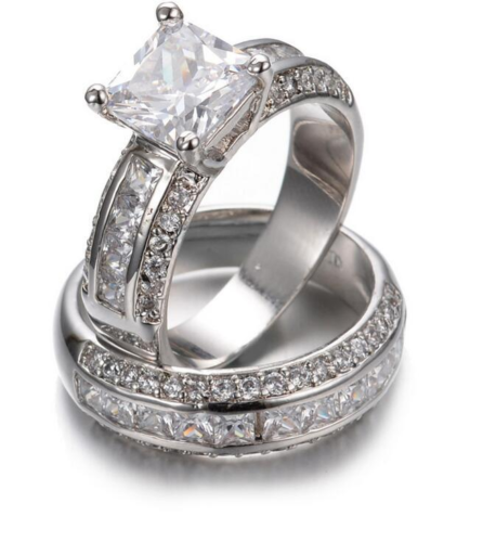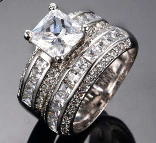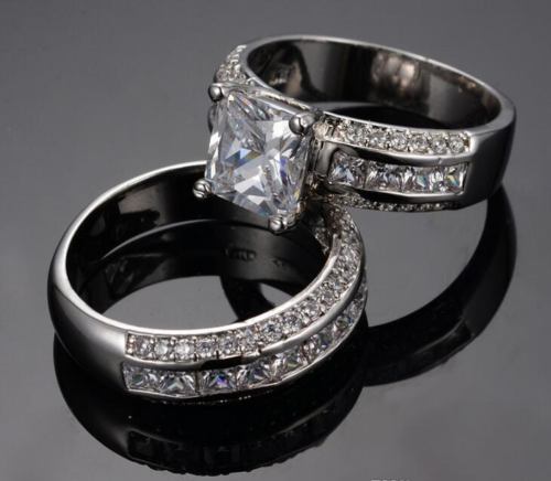4.5ct Princess Cut Diamond Bridal Solitaire Ring Band Set 14K White Gold Finish