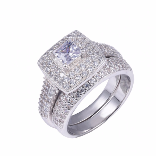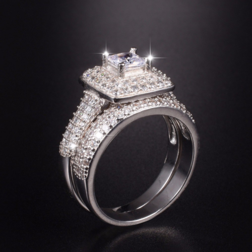4.5ct Princess Cut VVS1D Diamond Engagement Ring 18k White Gold Over Bridal Set