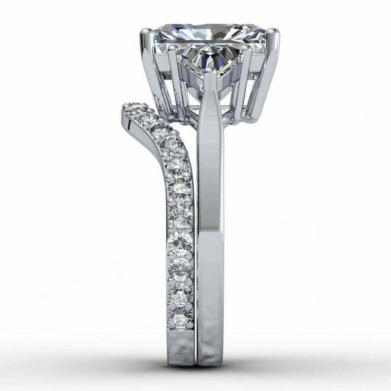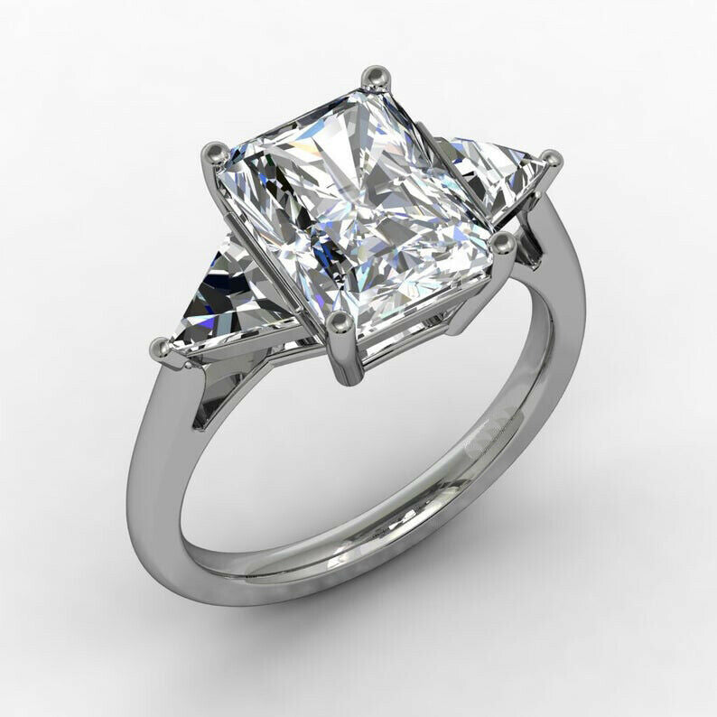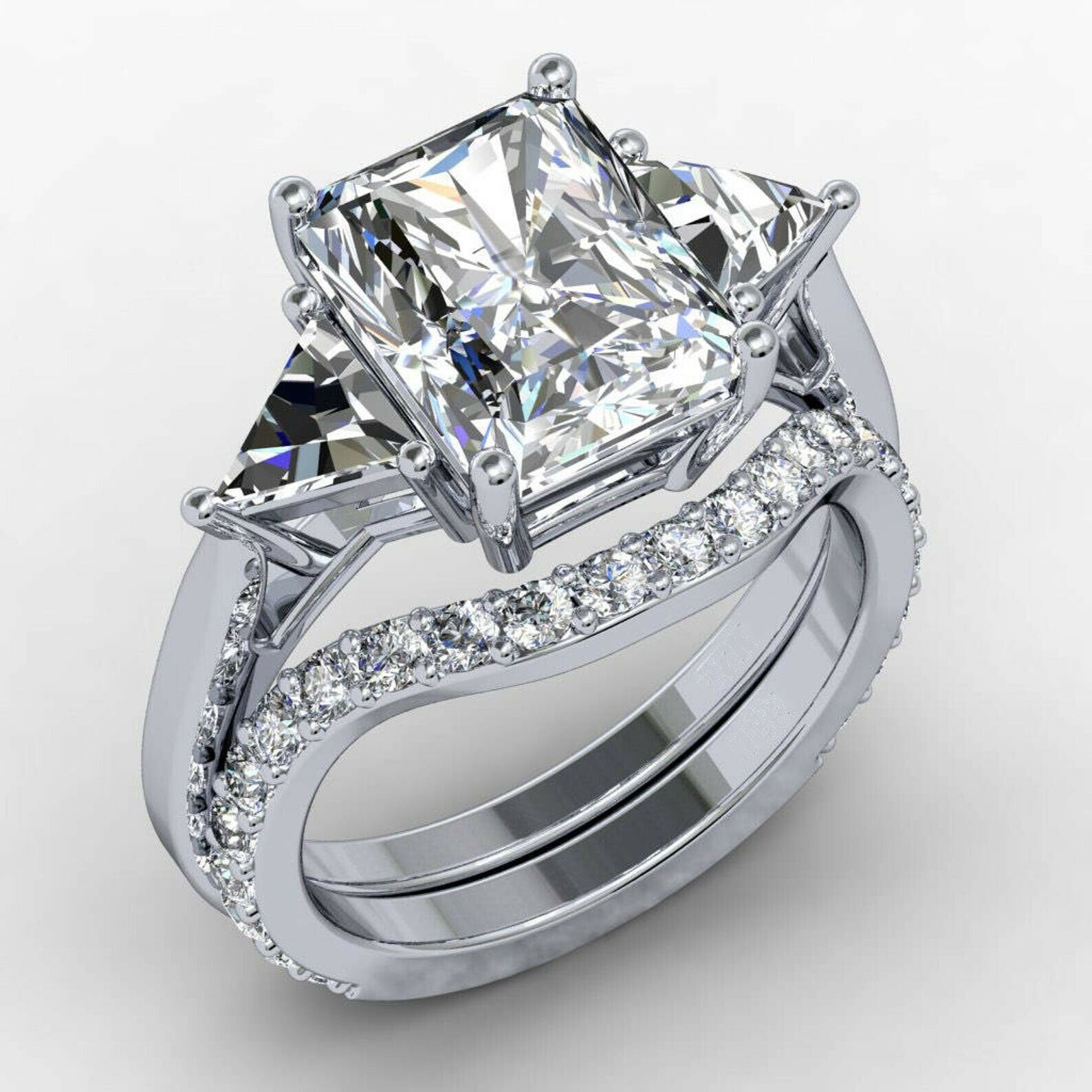 4.5ct Radiant Cut Diamond Engagement Ring Bridal Set Trilogy 14k White Gold Over