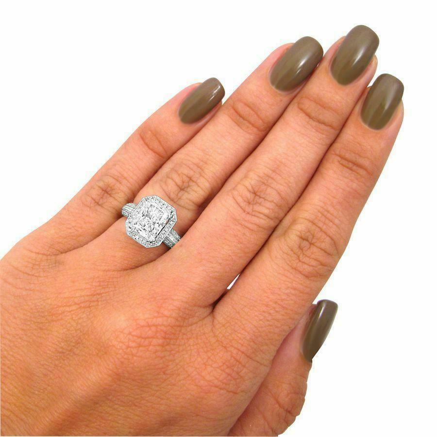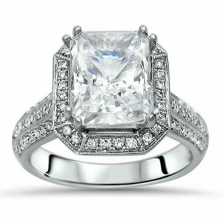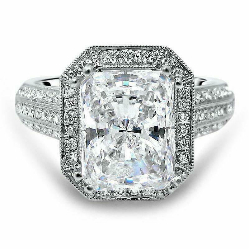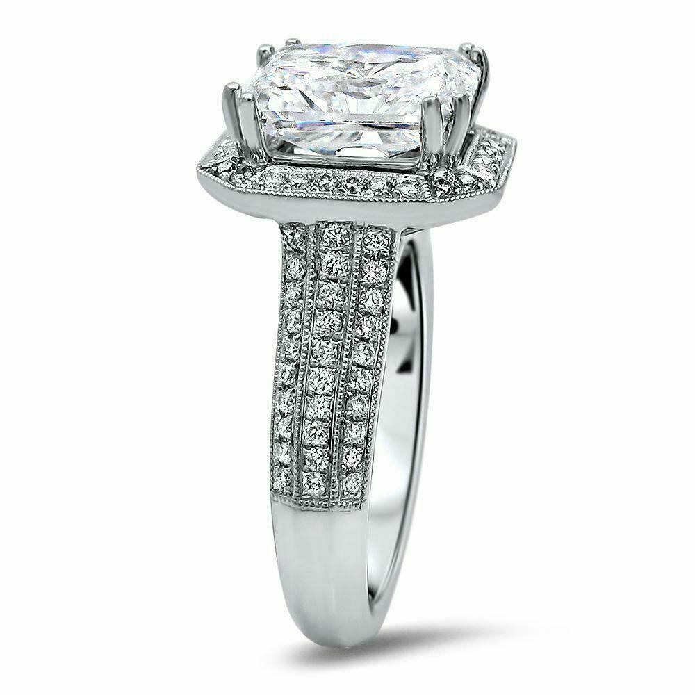 4.5ct Radiant Cut DVVS1 Diamond Halo Vintage Engagement Ring 14K White Gold Over