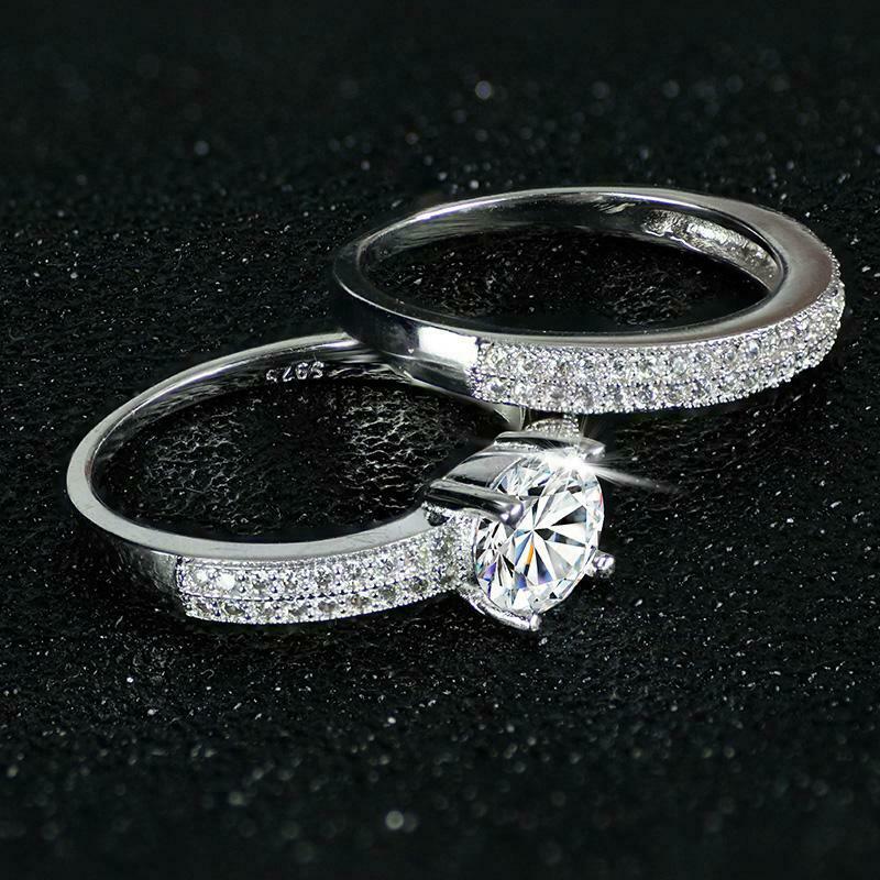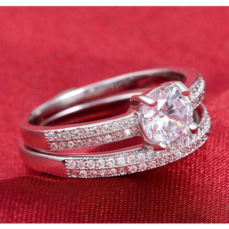 4.5Ct Round Cut Diamond Bridal Set Two Row Accent Ring Band 14K White Gold Over