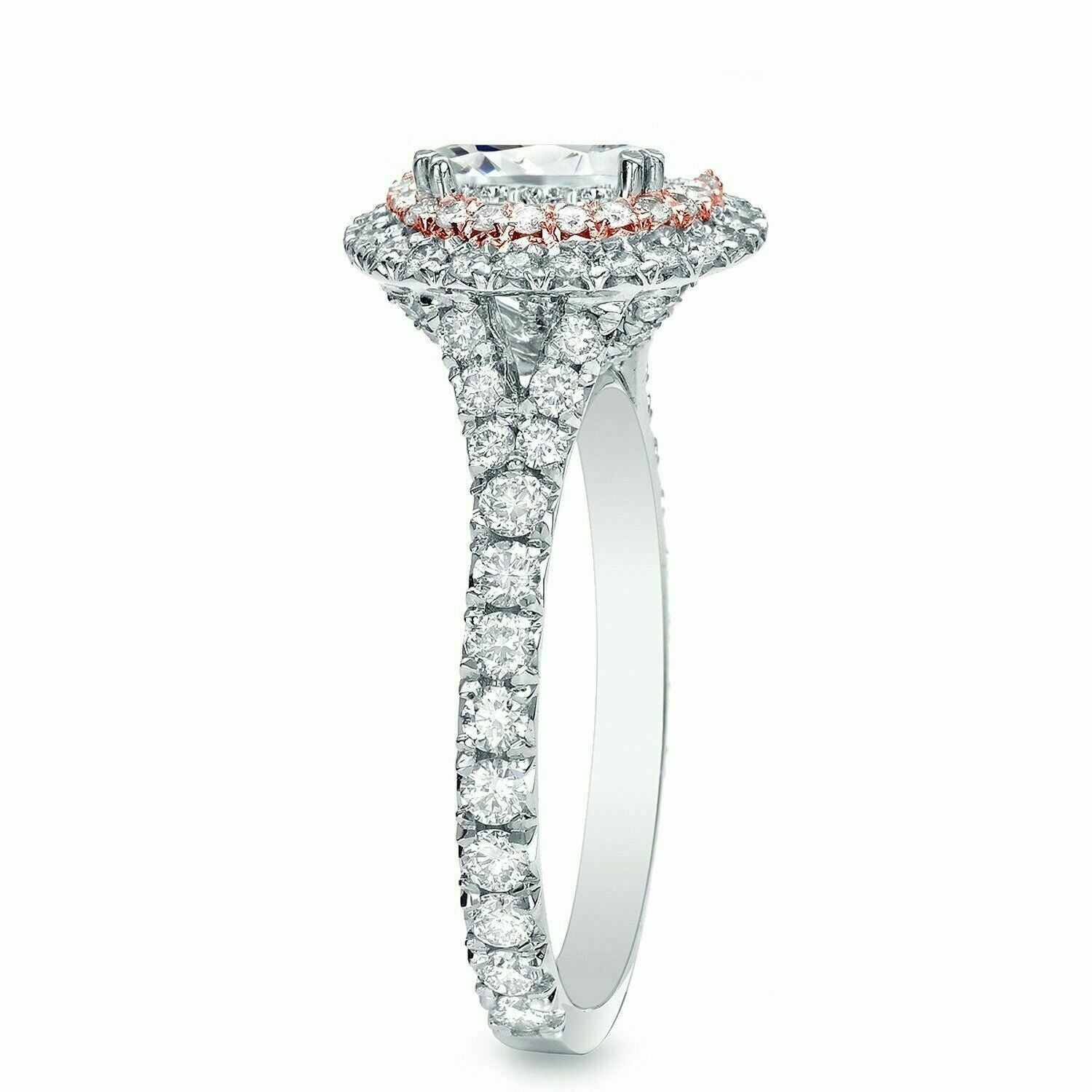 4.5ct Round Cut DVVS1 Diamond Double Halo Engagement Ring 14K Two Tone Gold Over