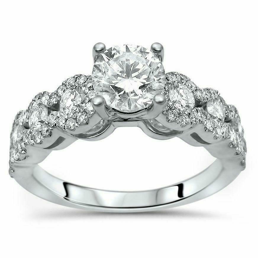 4.5ct Round Cut DVVS1 Diamond Halo Accent Engagement Ring 14K White Gold Finish