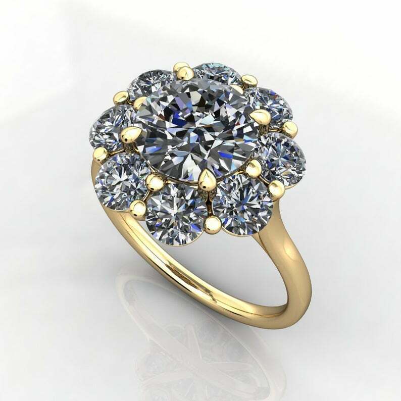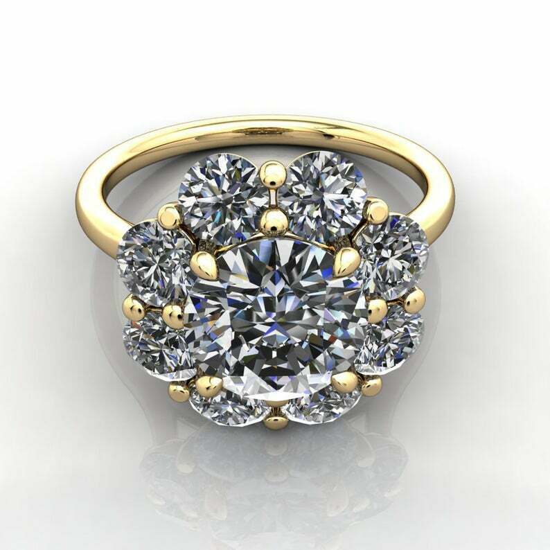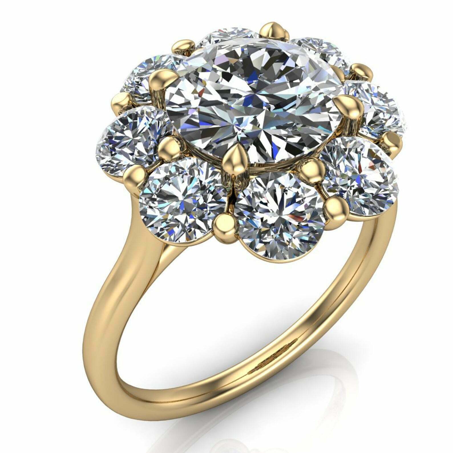 4.5ct Round Cut VVS1D Diamond Engagement Ring Floral Halo 14k Yellow Gold Finish