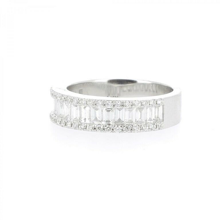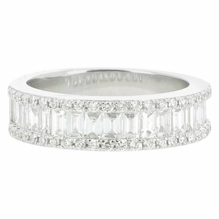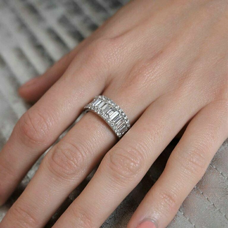 4.6ct Emerald Cut Diamond Wedding Ring Band Half Eternity 14k White Gold Finish