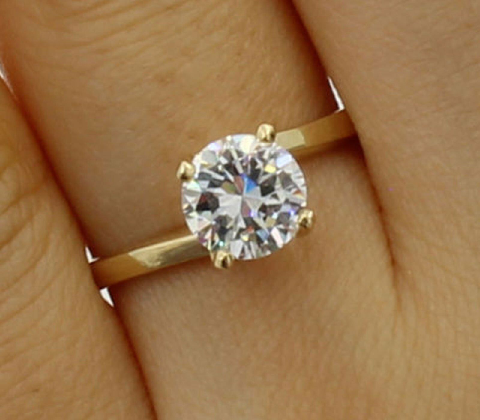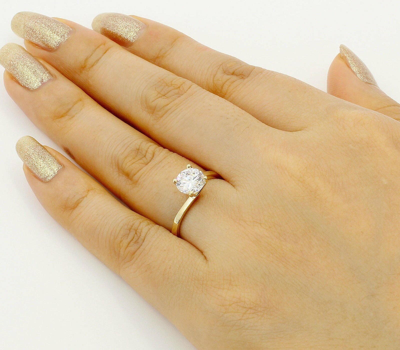 4 Prong Solitaire Engagement Ring 0.6ct Round Cut Diamond 14k Yellow Gold Finish