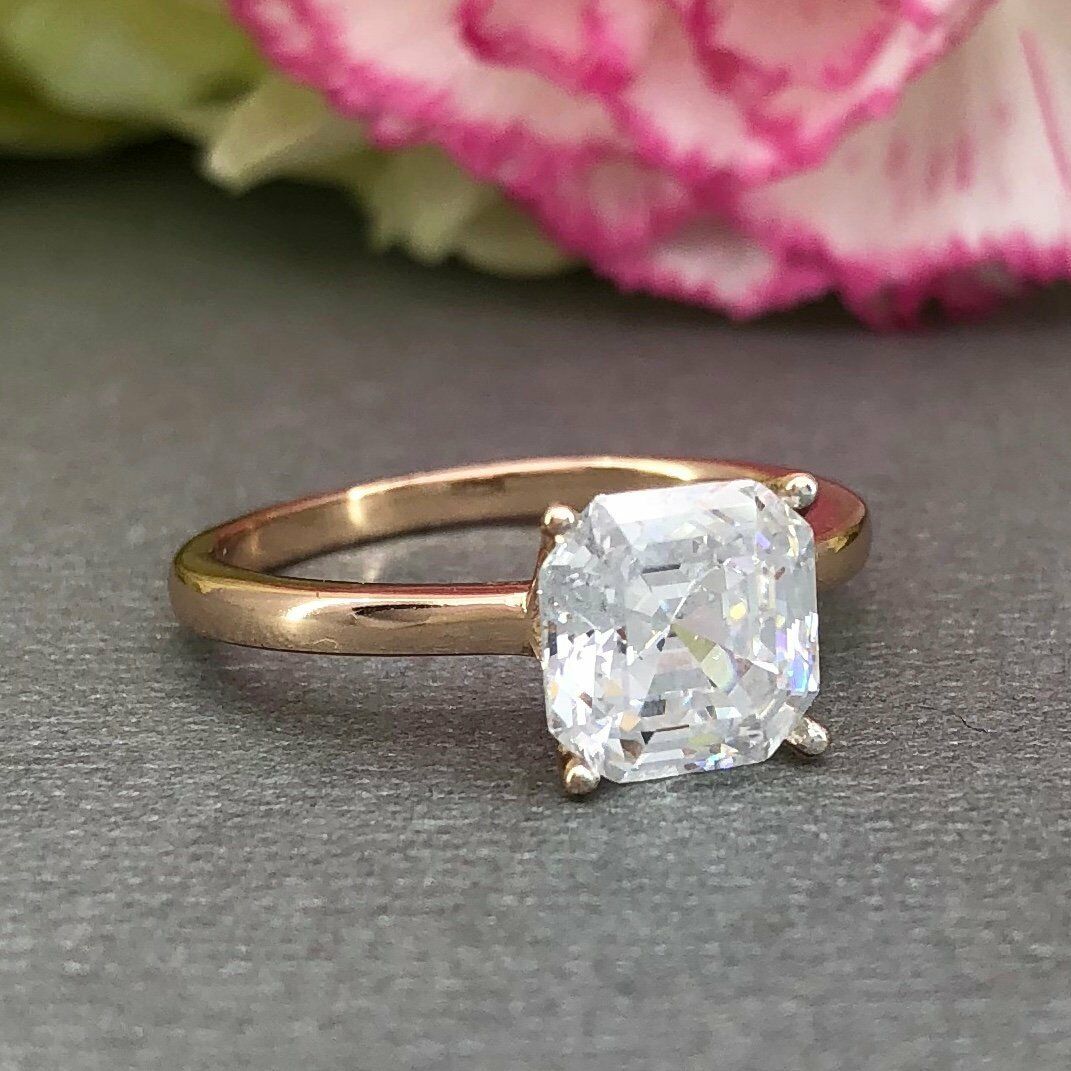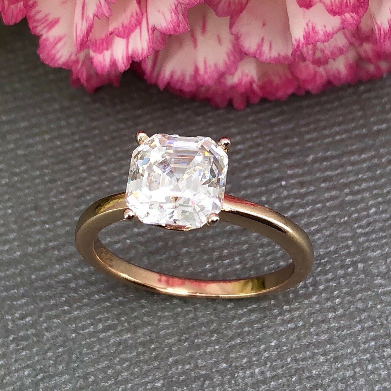 4 Prong Solitaire Engagement Ring 0.9ct Asscher Cut Diamond 14k Rose Gold Finish