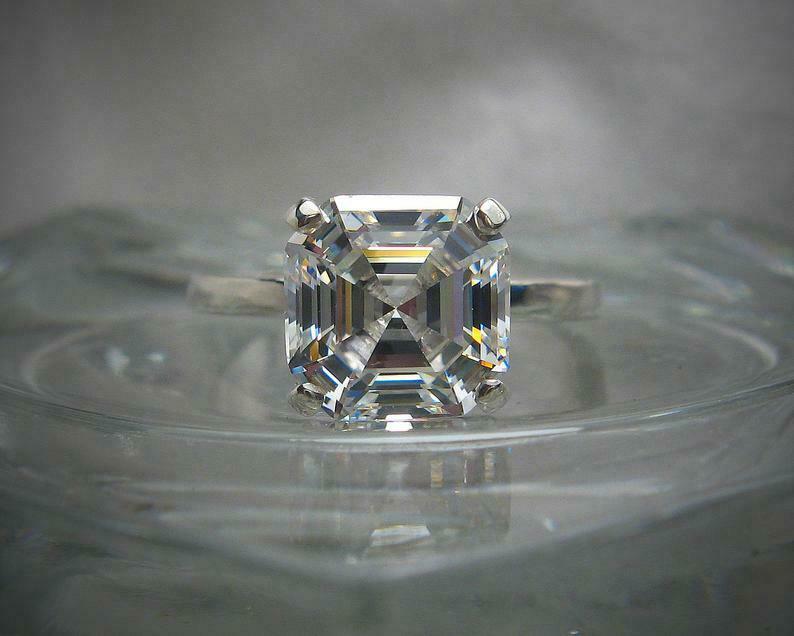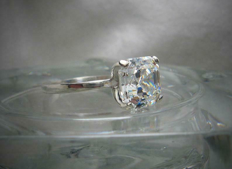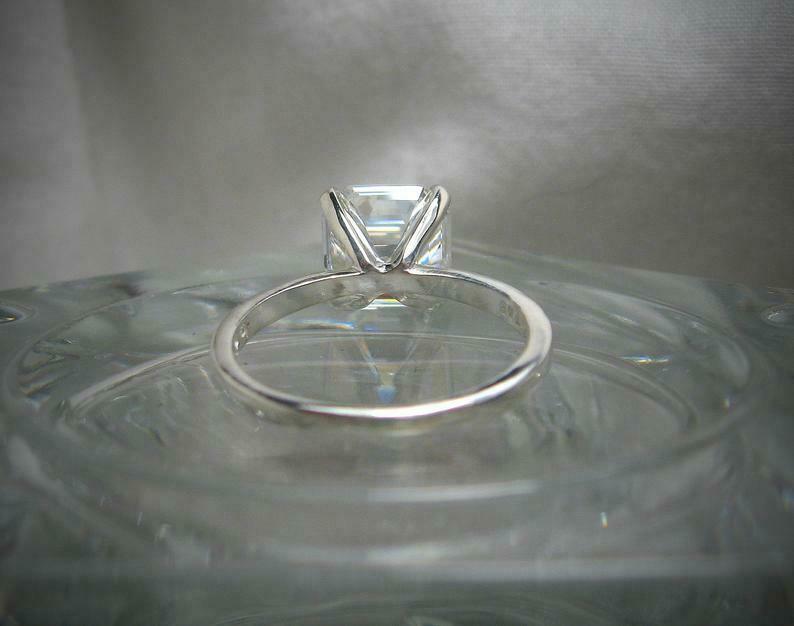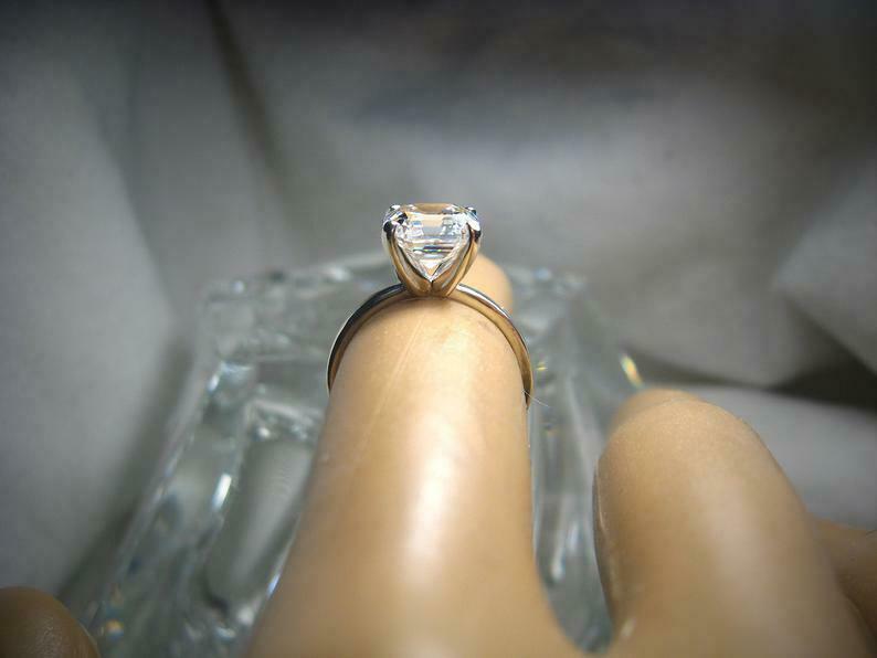 4 Prong Solitaire Engagement Ring 3ct Asscher Cut Diamond 14k White Gold Finish
