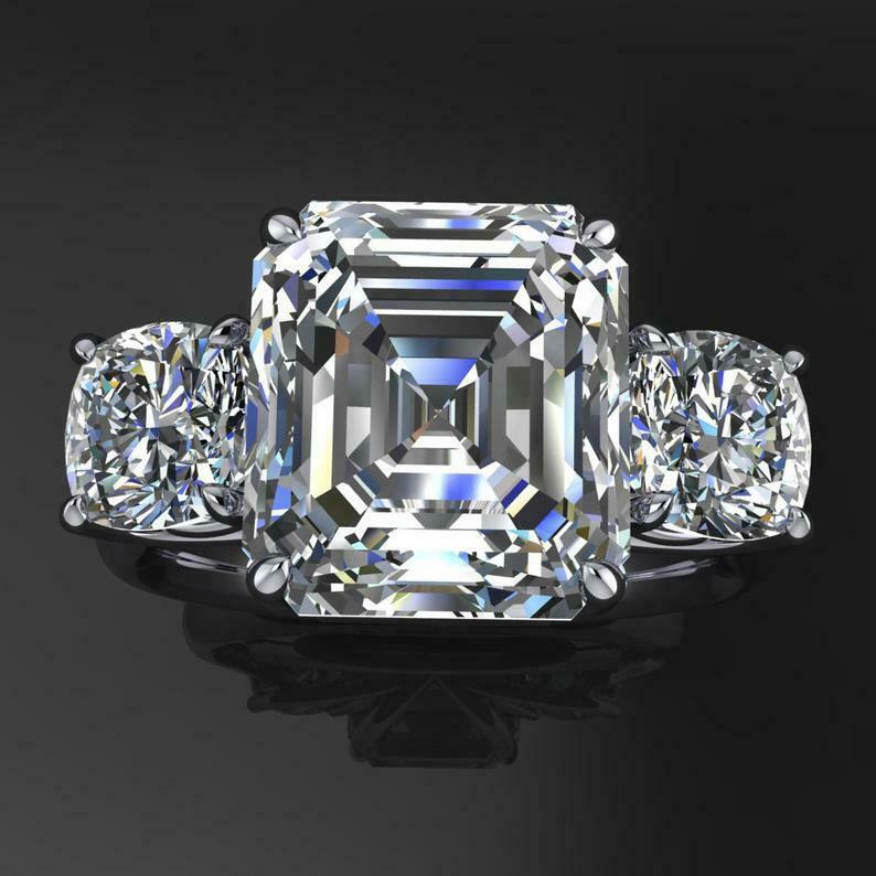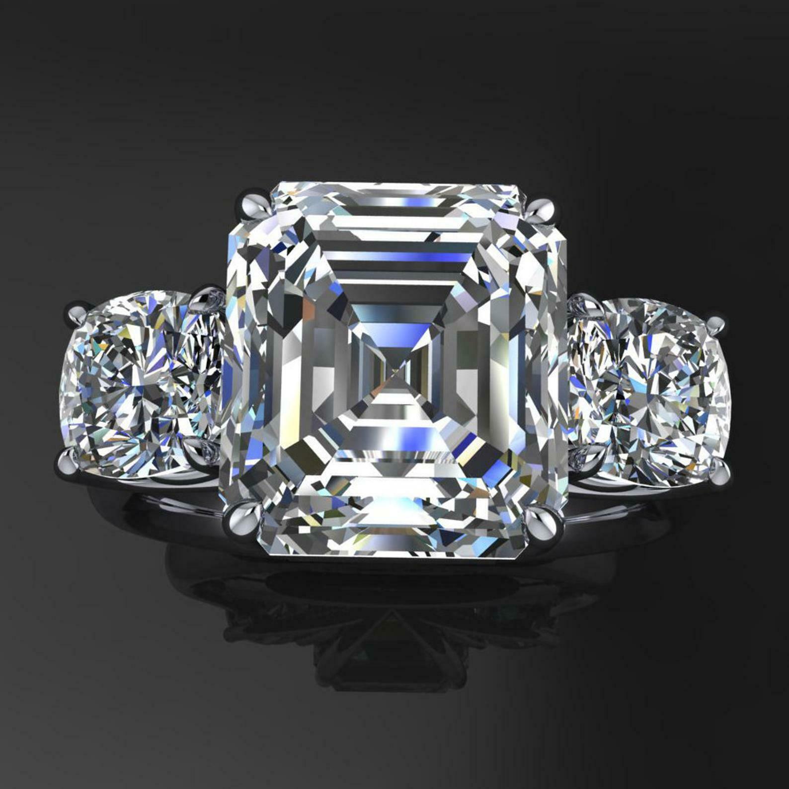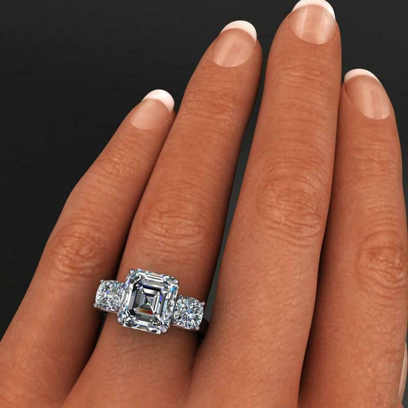 4ct Asscher Cut Diamond Engagement Ring 14k WhiteGold Over Round Accents Trilogy