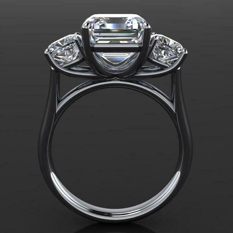 4ct Asscher Cut Diamond Engagement Ring 14k White Gold Over Round Accents Trilogy