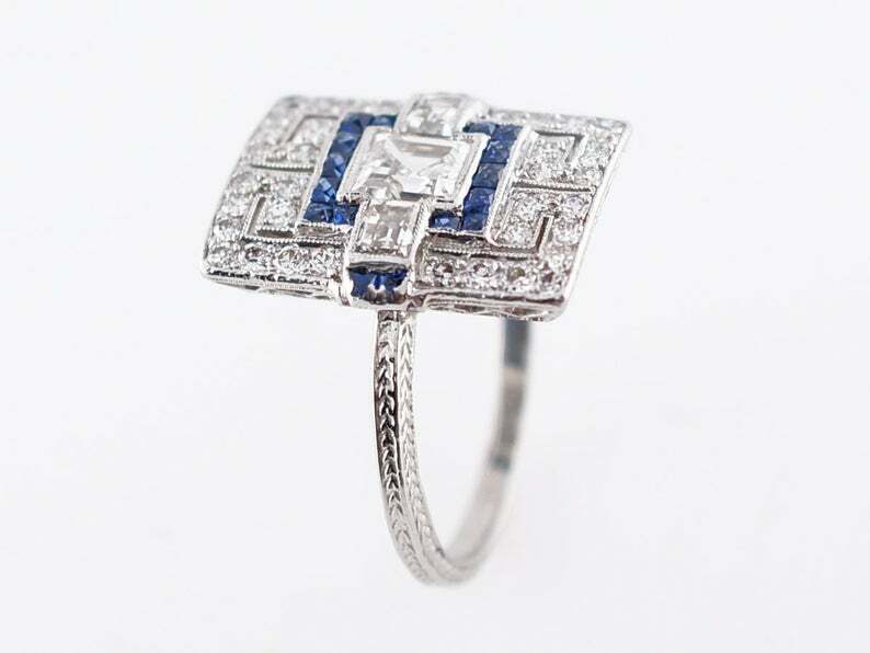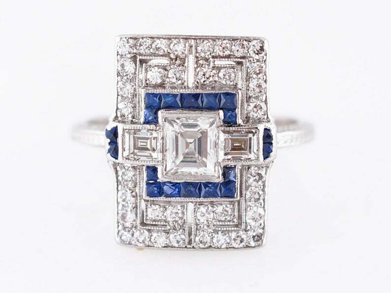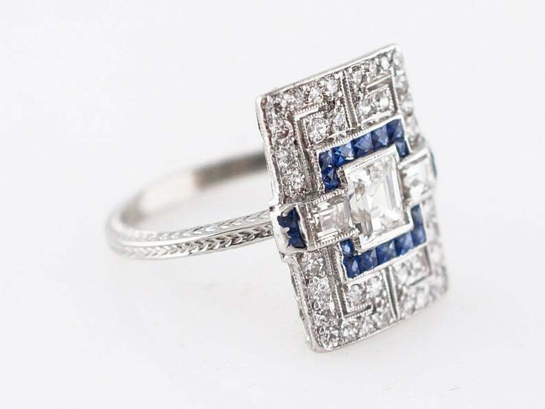 4ct Asscher Cut Diamond Engagement Ring Art Deco Milgrain 14k White Gold Finish