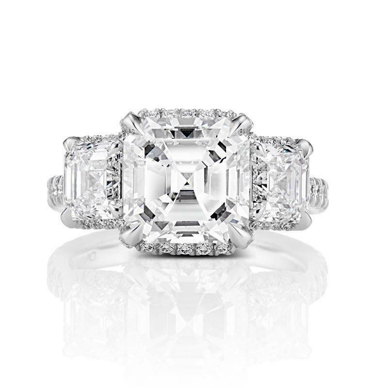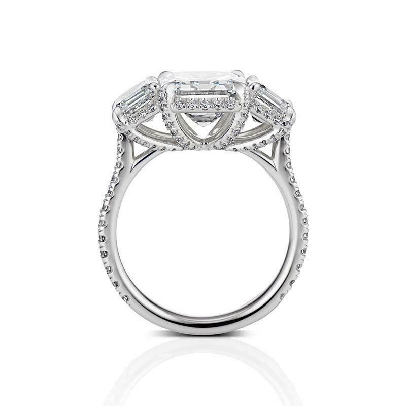 4Ct Asscher Cut VVS1 Diamond Trilogy Halo Engagement Ring 14K White Gold Finish