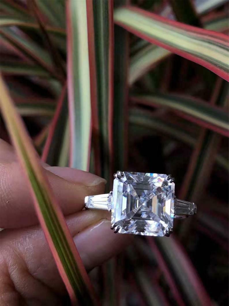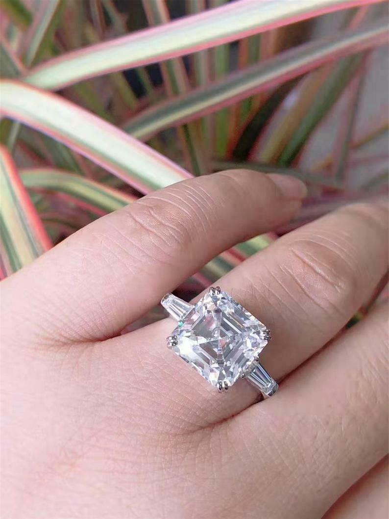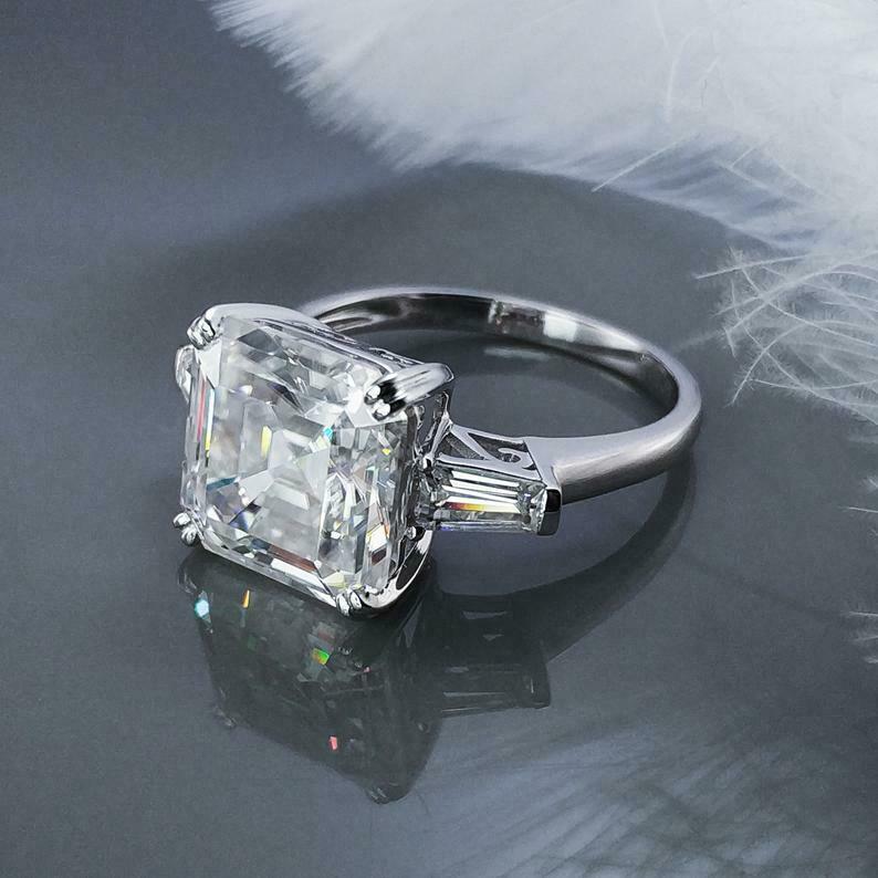 4ct Asscher Diamond Engagement Ring Baguette Accent Trilogy 14k White Gold Over
