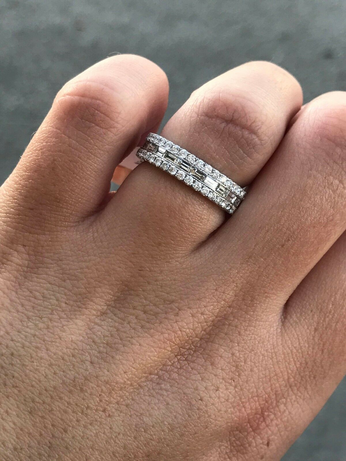 4ct Baguette Cut Diamond 3 Line Eternity Wedding Ring Band 14k White Gold Finish