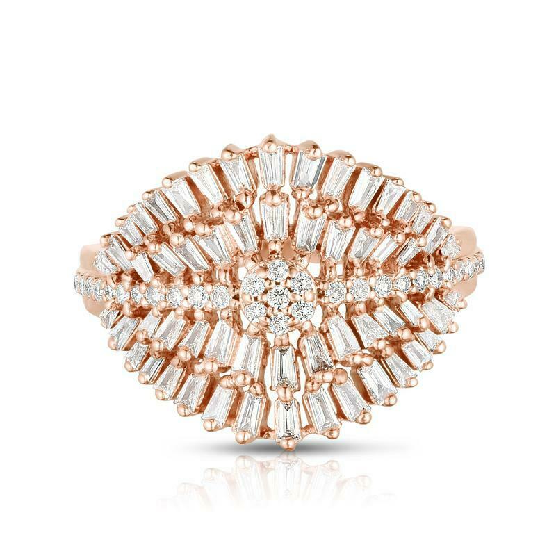 4ct Baguette Cut Diamond Engagement Ring 14k Rose Gold Finish Cluster Cocktail