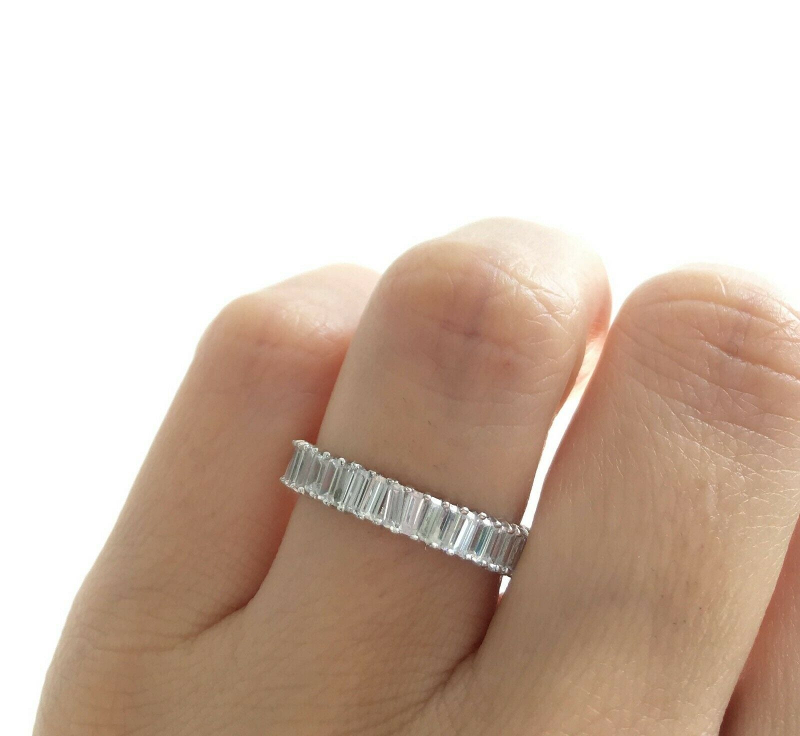 4Ct Baguette Cut DVVS1 Diamond Full Eternity Wedding Band 14K White Gold Finish