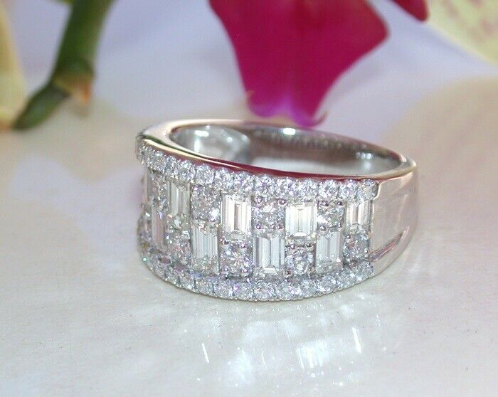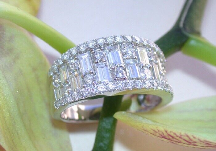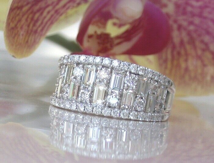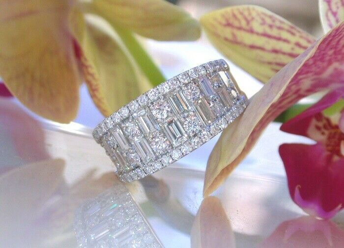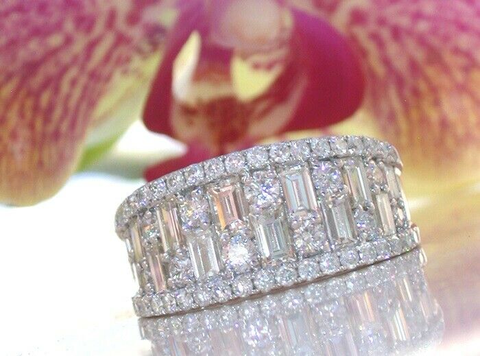 4Ct Baguette Round Cut Diamond Wide Trendy Wedding Ring Band 14K White Gold Over