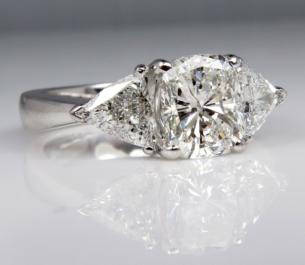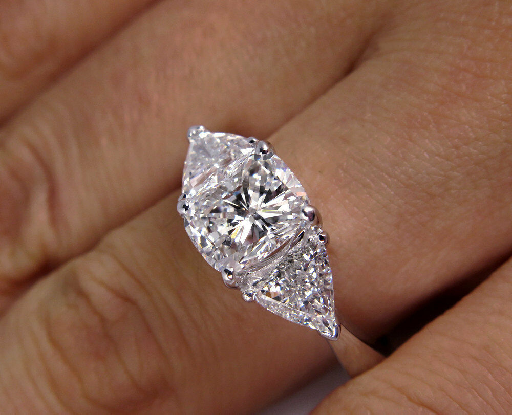 4Ct Cushion Cut Diamond Engagement Ring 14K White Gold Finish Trillion Accents